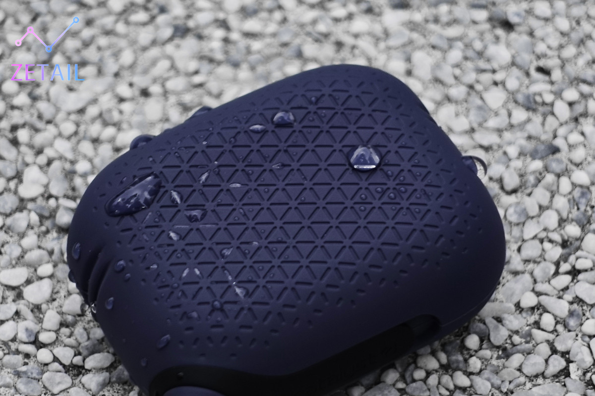 AirPods Pro 保護套的防水設計十分獨特,雖然從外觀看起來,水好像會從保護套頂部滲入,但實際上 Catalyst 很巧妙地在內部設計了「三道防線」阻擋水分流入或滲入,基本上只要不刻意掀開,保護套都不至於進水,如此周到又不著痕跡的防水設計難怪能得到 Apple 青睞。