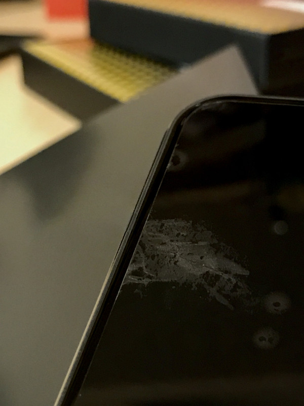 ▲ 前幾年剛開始練習自己貼保護貼的時候,第一次貼上去發現有灰塵於是又撕起來重貼一次的過程中,沾到指紋就變得像上圖的慘狀,就不講是什麼品牌了 (仔細看也看得出來XD),主要是塑膠保護貼不好貼。