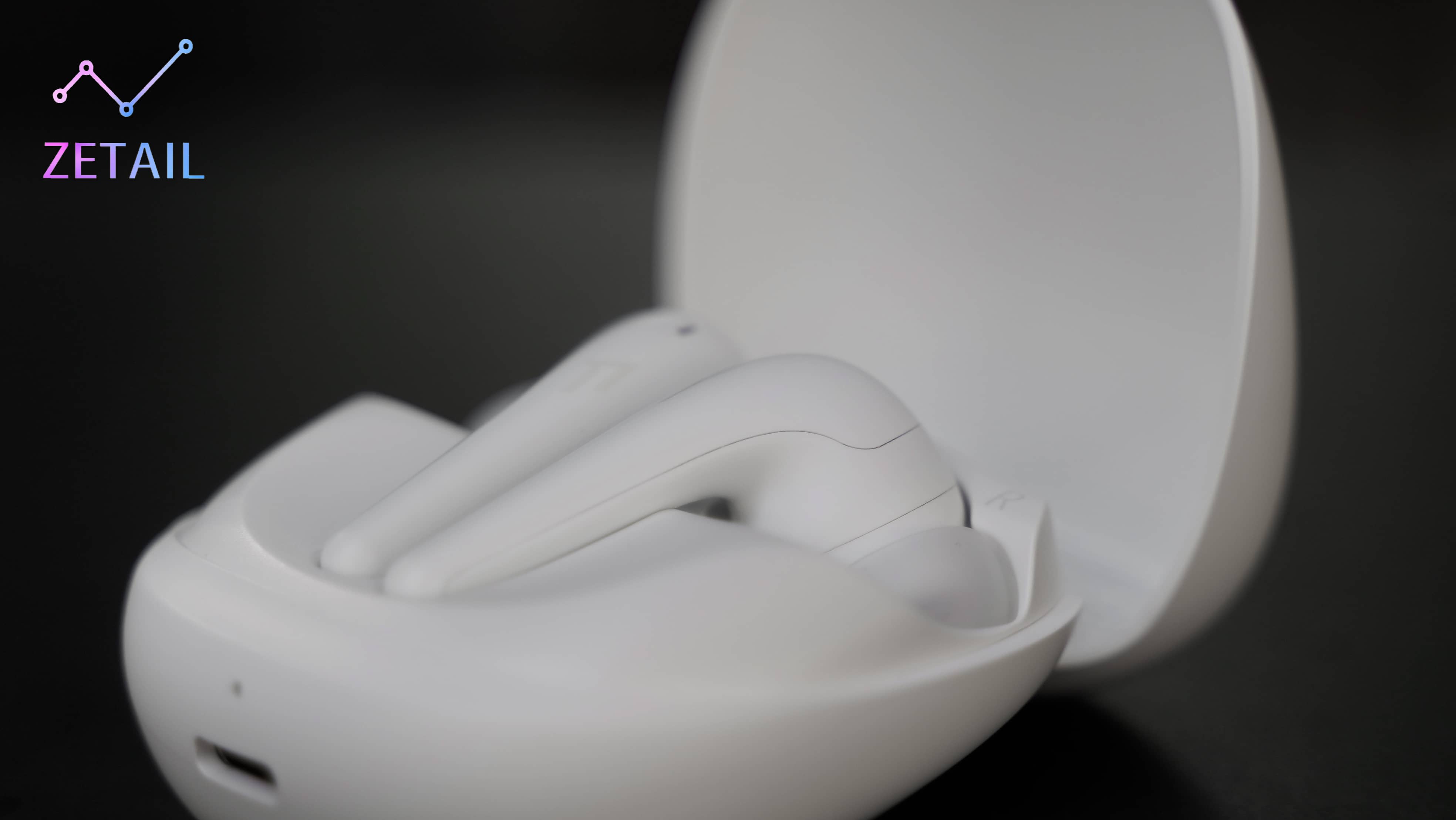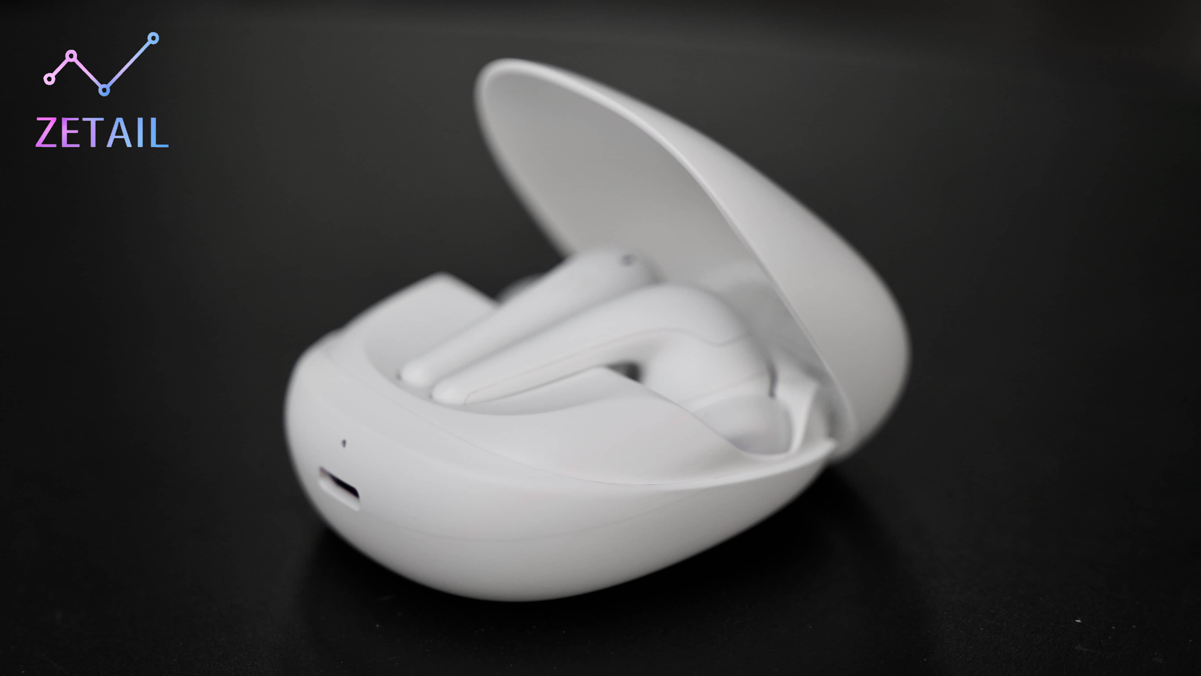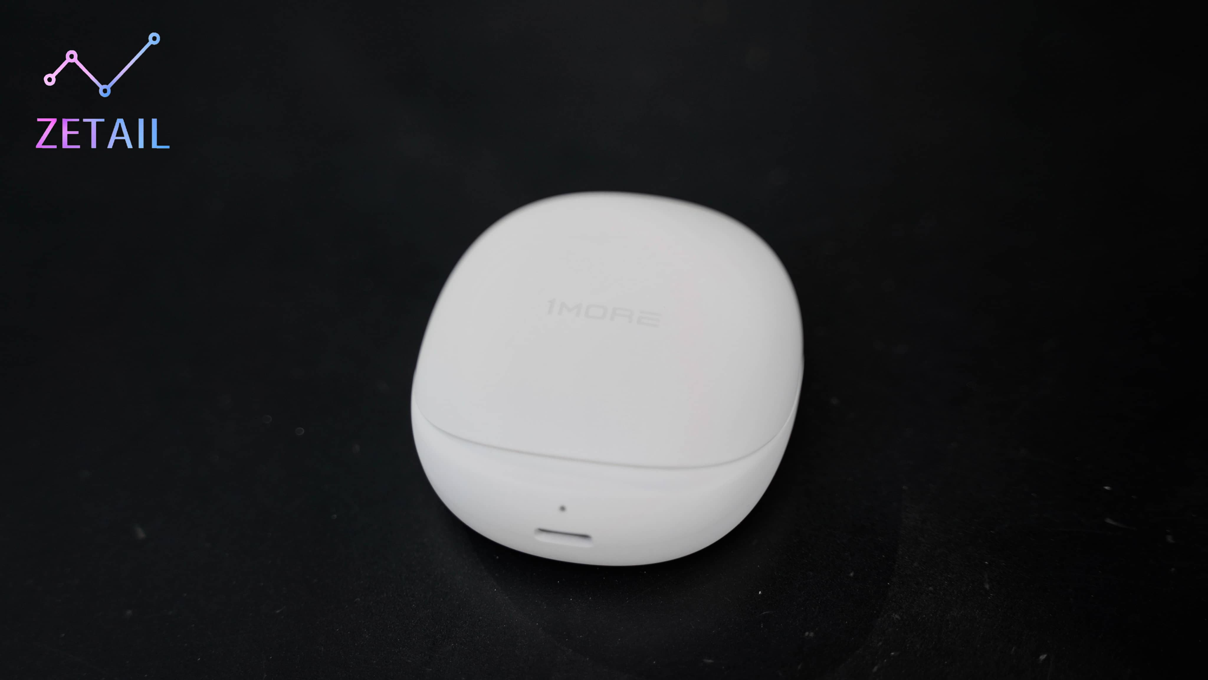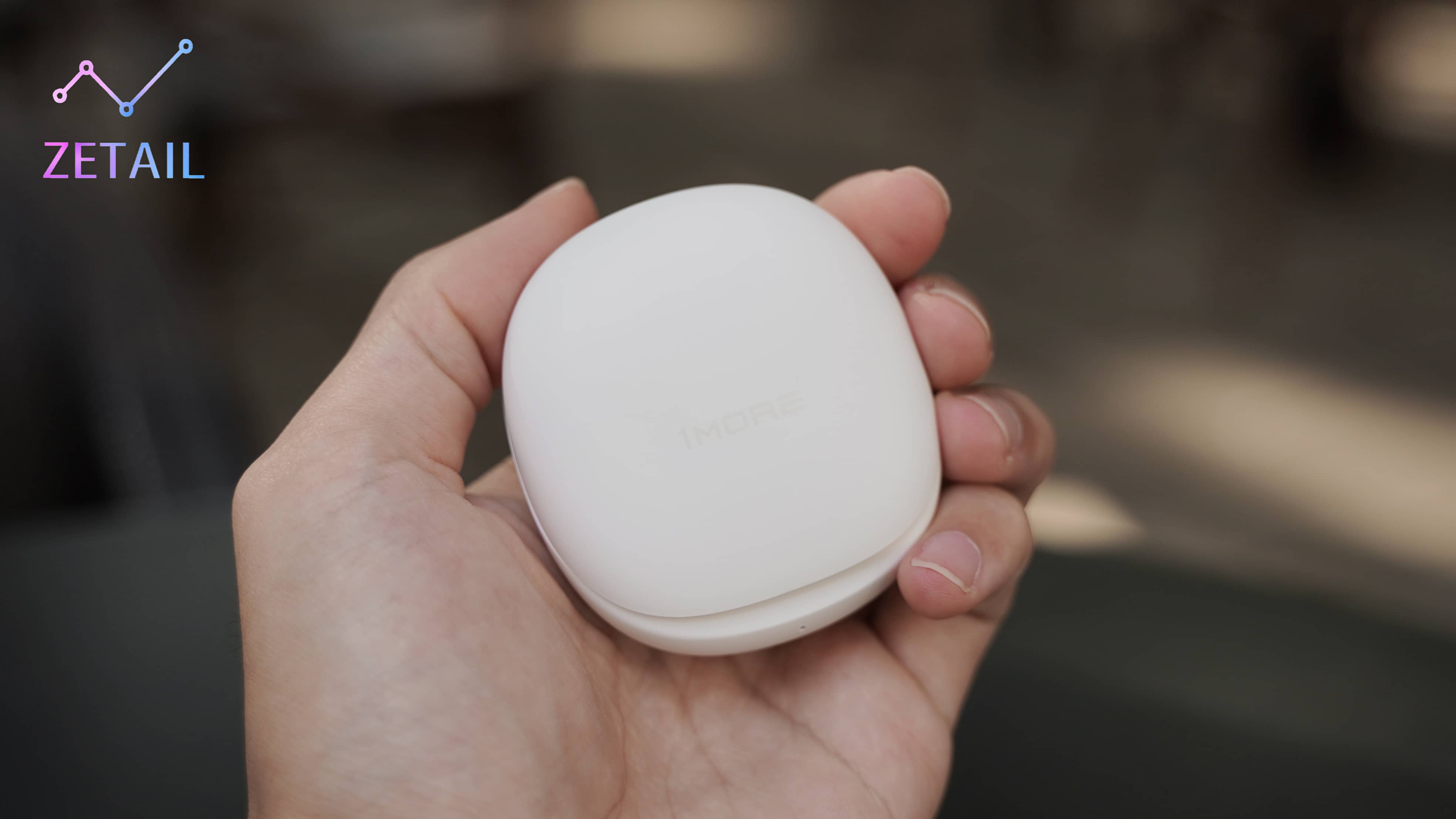 1MORE Aero 的外觀以三千元內的真無線藍牙耳機來說,算是有特色,質感也出色。鵝卵石造型的充電盒很圓潤、手感很好,但有點臃腫;外殼使用細緻的磨砂質感,摸起來非常順滑;設計採極簡風格,除了頂部 1MORE 的 Logo,外觀就沒有其它任何字樣,無論外型、設計都給人很可愛的感覺。