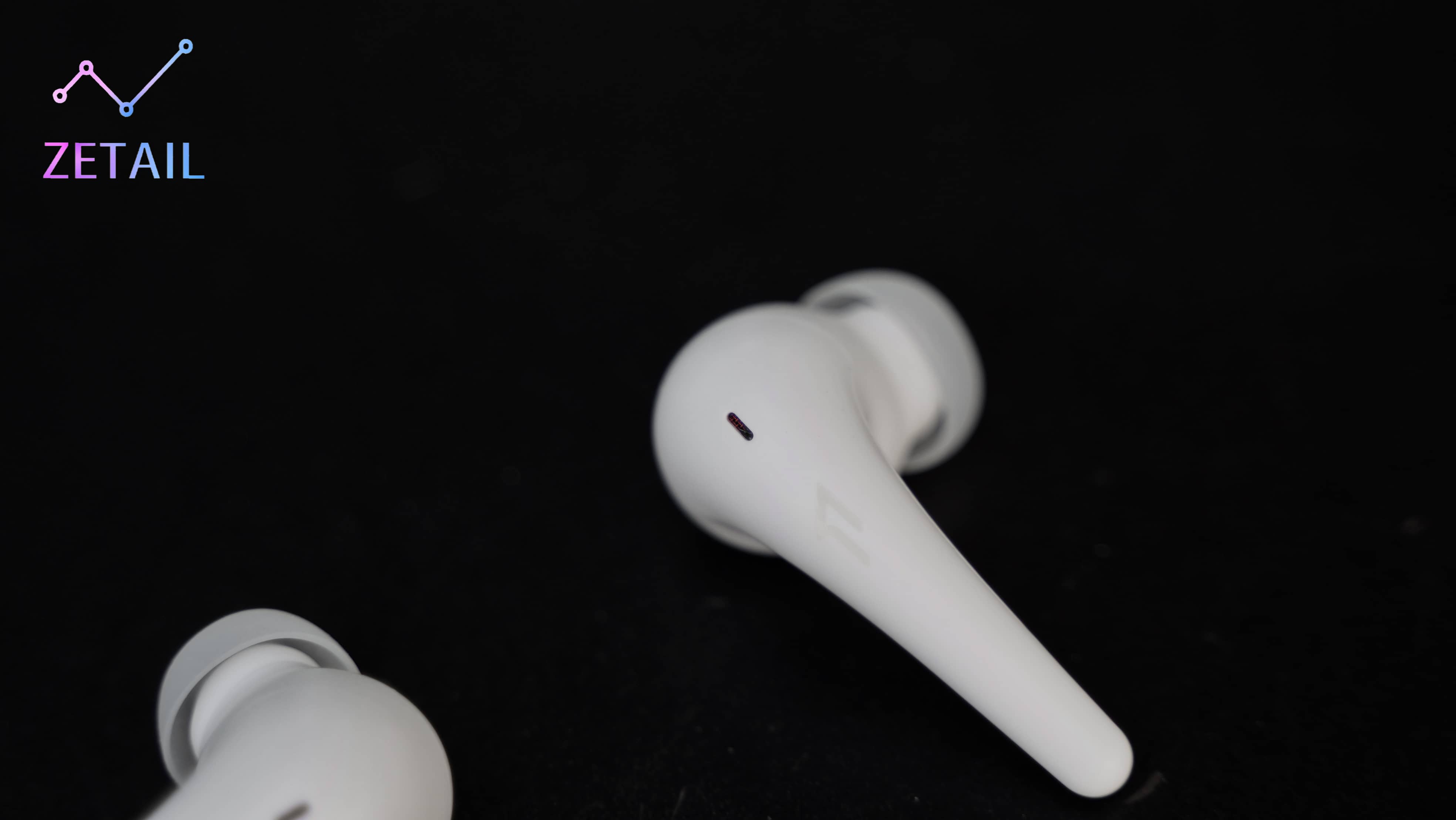Aero 的耳機採用近來常見的指向桿設計,好處是拉近了麥克風與嘴巴的距離,可以提升通話、錄音的收音品質,不過 Aero 的指向桿偏長,所以戴上耳機時,看起來會比較明顯。耳機的設計一樣是簡約風,沒有任何多餘裝飾,整體線條流暢、圓滑,指向桿採用錐狀造型,讓我聯想到鐘乳石,跟競品千篇一律的外觀比起來更有特色。