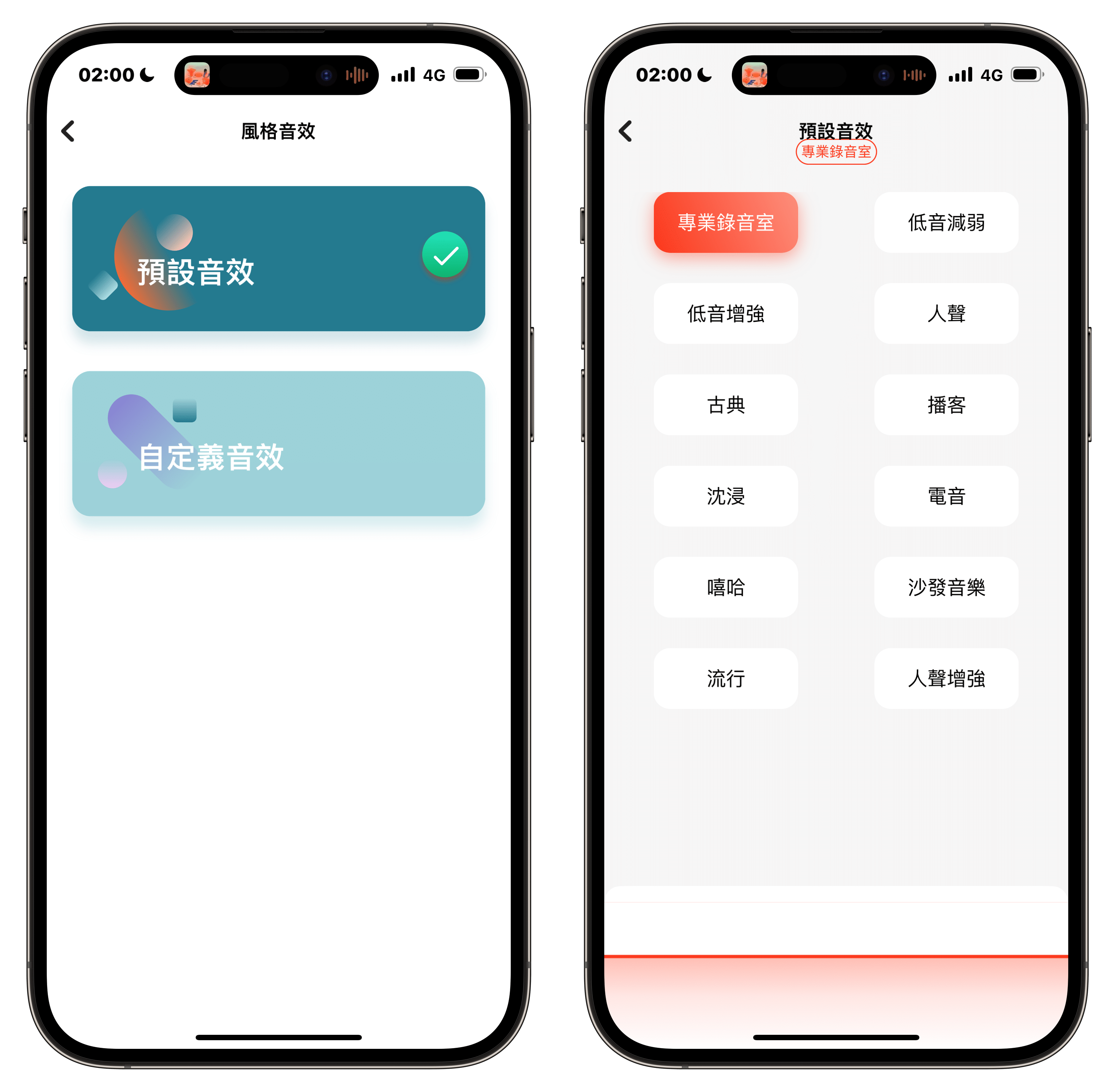 ▲ 在「風格音效」裡面有「預設音效」跟「自定義音效」兩種選擇,預設音效裡面就有 1MORE 準備的 12 種 EQ 可以直接套用。