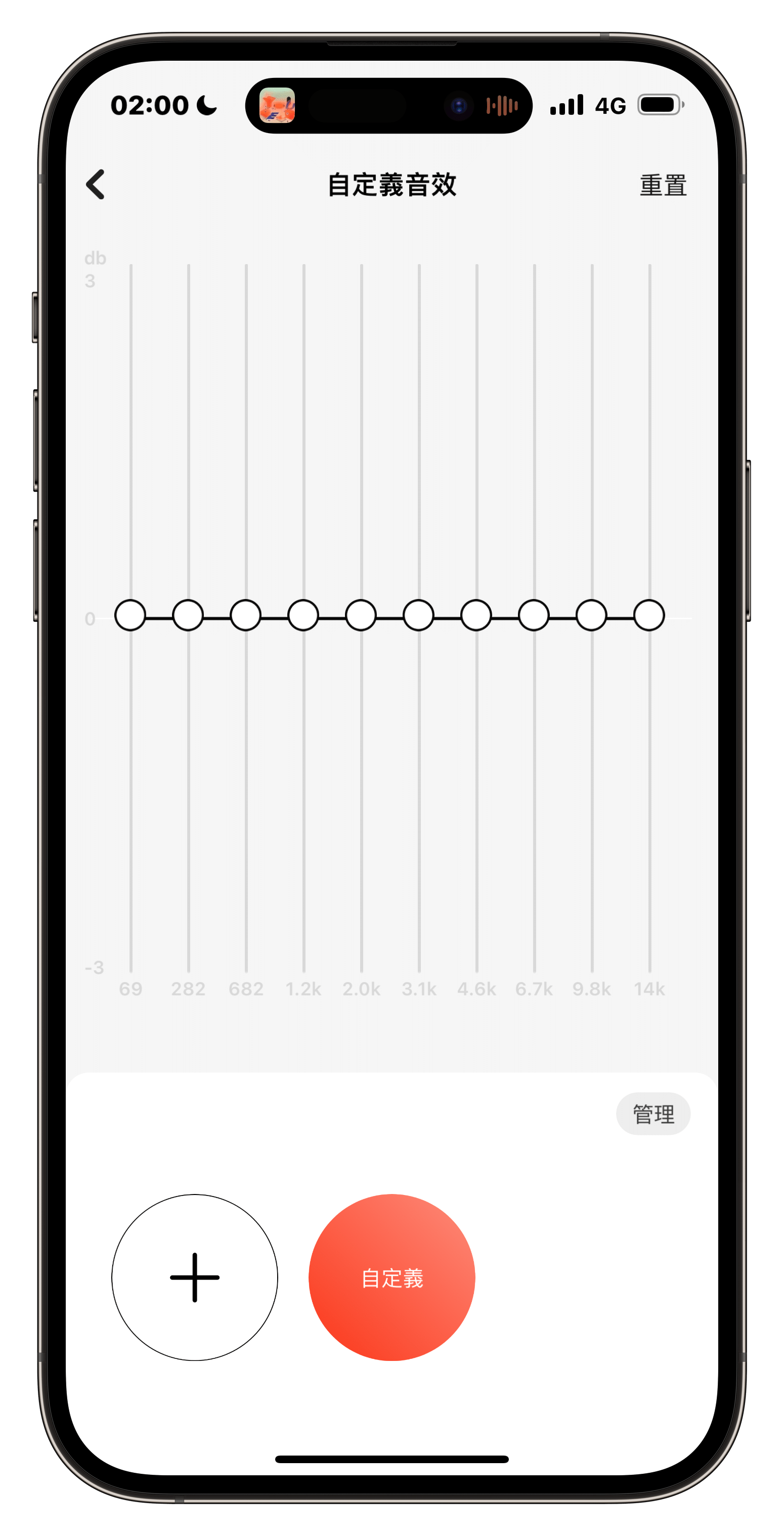 ▲ 如果選擇自定義音效,則可以打造自己專屬的 EQ。