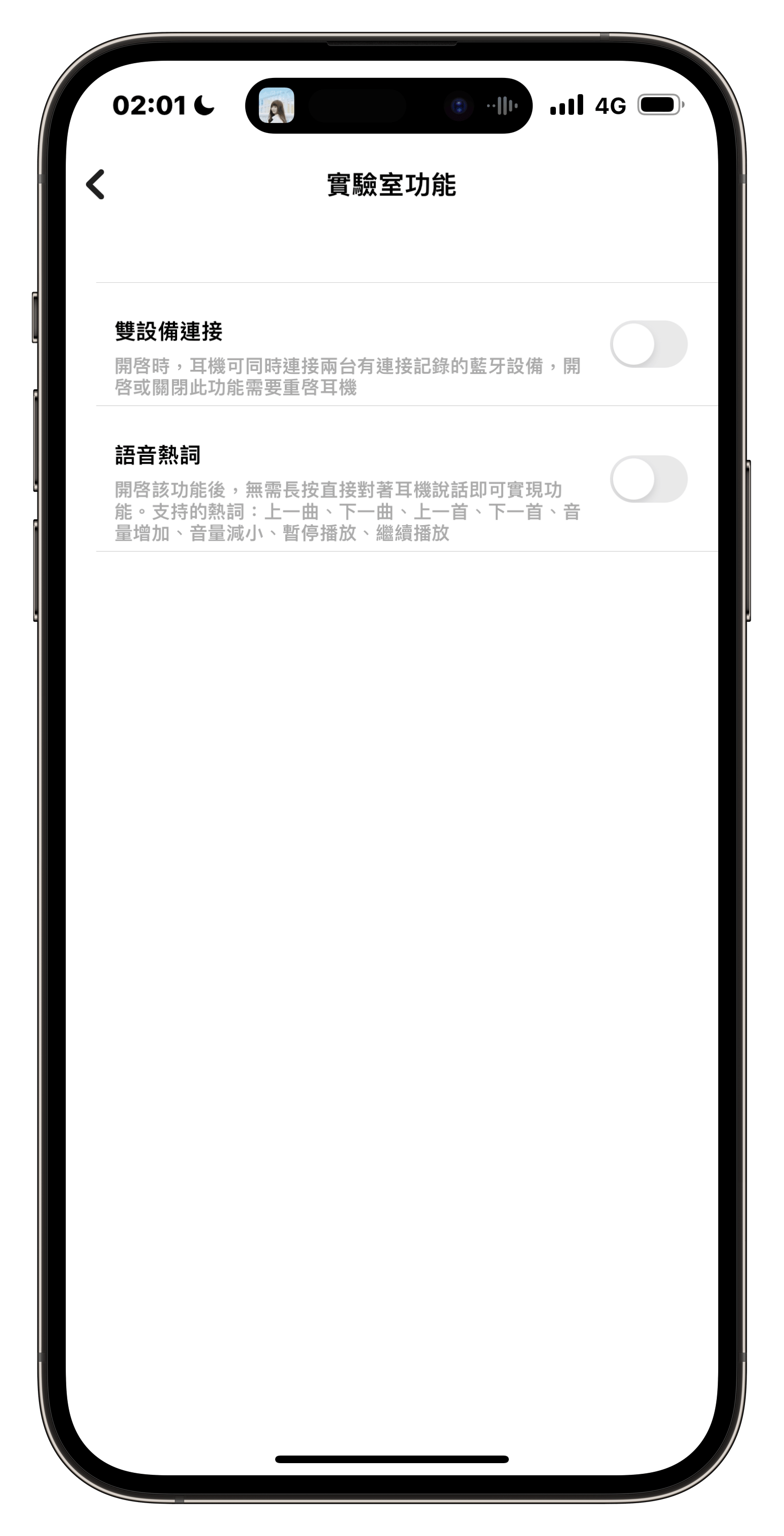 Aero 也支援「多點連線」功能,只是被低調地放在「實驗室功能」中,要手動打開。這個功能讓耳機可以同時跟兩台裝置連線,像是手機 + 手機、手機 + 電腦,並來回切換聲音來源;比如你只要先暫停 A 手機的音樂,再播放 B 電腦的影片,聲音來源就會自動從 A 切換到 B,很適合有多裝置的使用者。我以手機 + 電腦來測試 Aero 的多點連線,每次切換都需要 6 秒左右,雖然無法無縫切換,不過它的穩定性很棒,用起來很可靠。