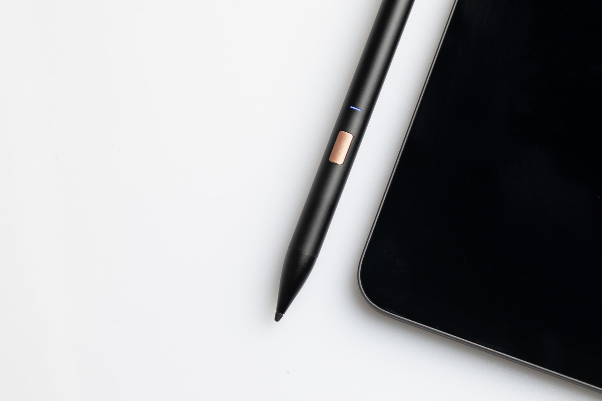 ▲ 這是 Adonit Note – UVC 的外觀,對 Note 還有印象的讀者就知道兩者的相似性真的很高。筆身正面有個玫瑰金色的按鍵,用來開機、關機、開啟 UVC 紫外光抗菌燈。