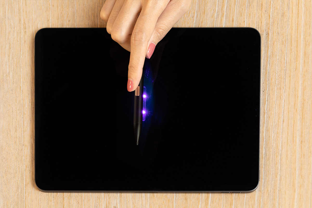 ▲ 使用 Note – UVC 時,切記不要直視它,並且最好距離物體兩公分內使用,以達到最好的效果。(照片提供 / Adonit)