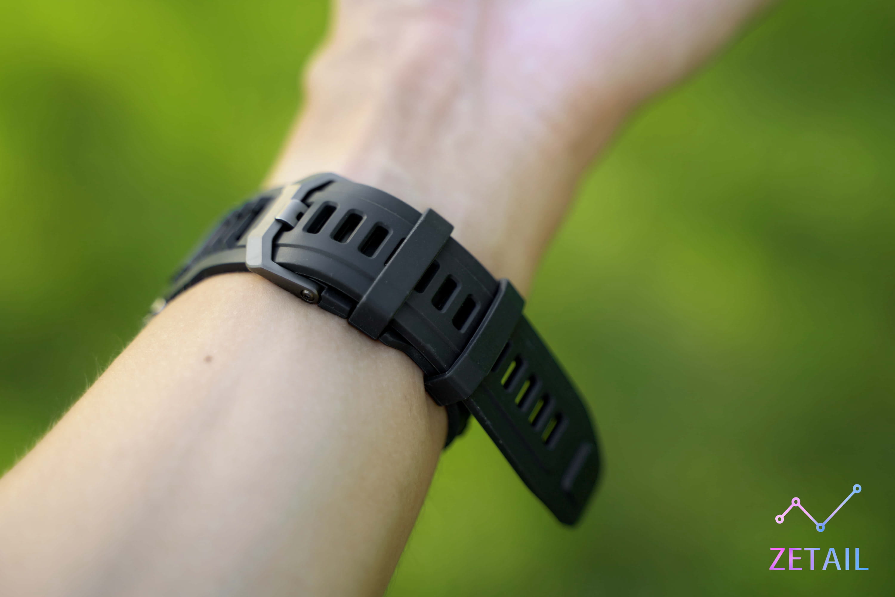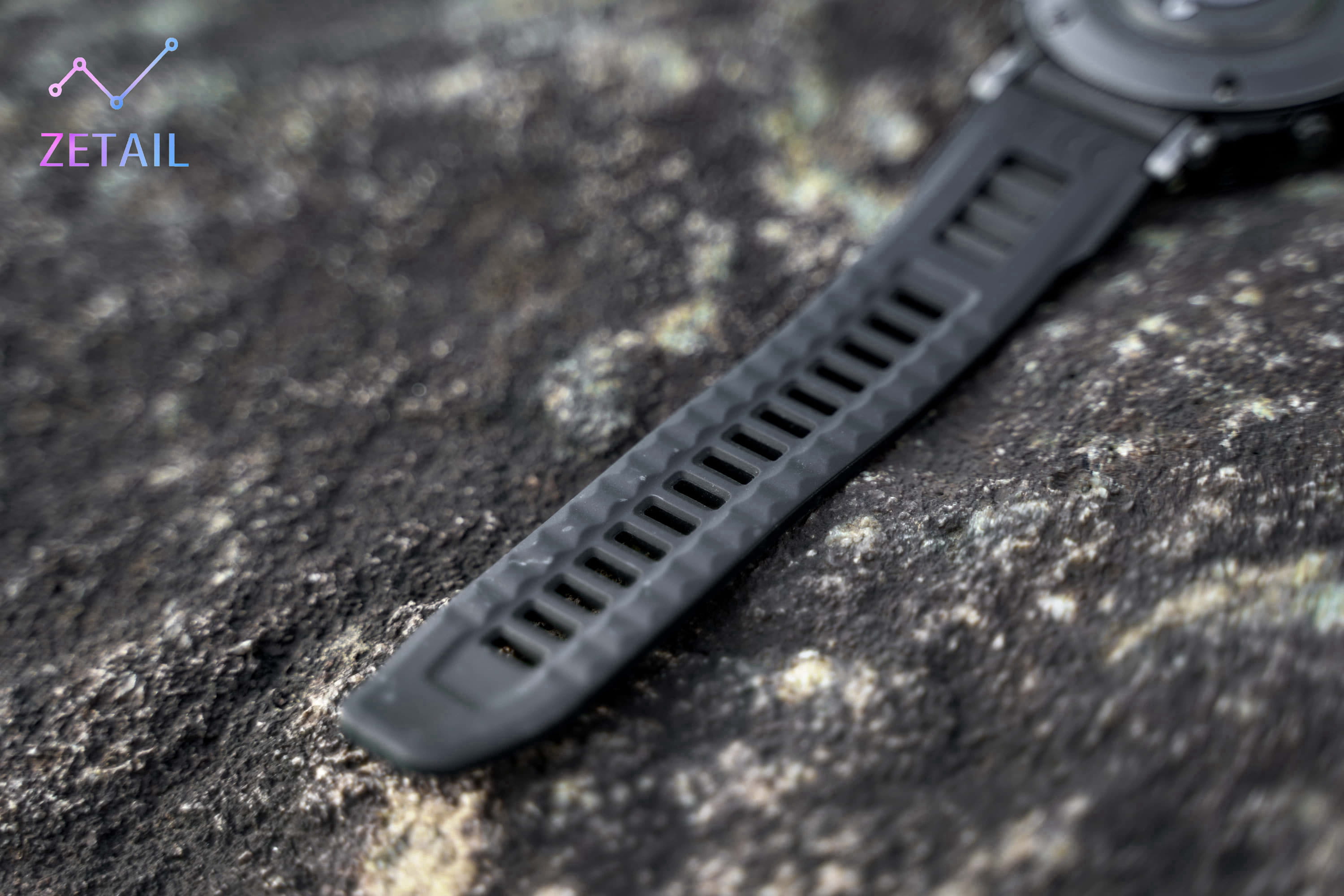 T-Rex Ultra 配備 22mm 矽膠錶帶,具有導汗設計,但不支援快拆,這應該是 Amazfit 為了確保堅固性而做的設計,對極限運動使用者很友好。只是如果你追求個性化,喜歡購買很多錶帶隨時替換,T-Rex Ultra 並沒有辦法給你這方面的自由度。