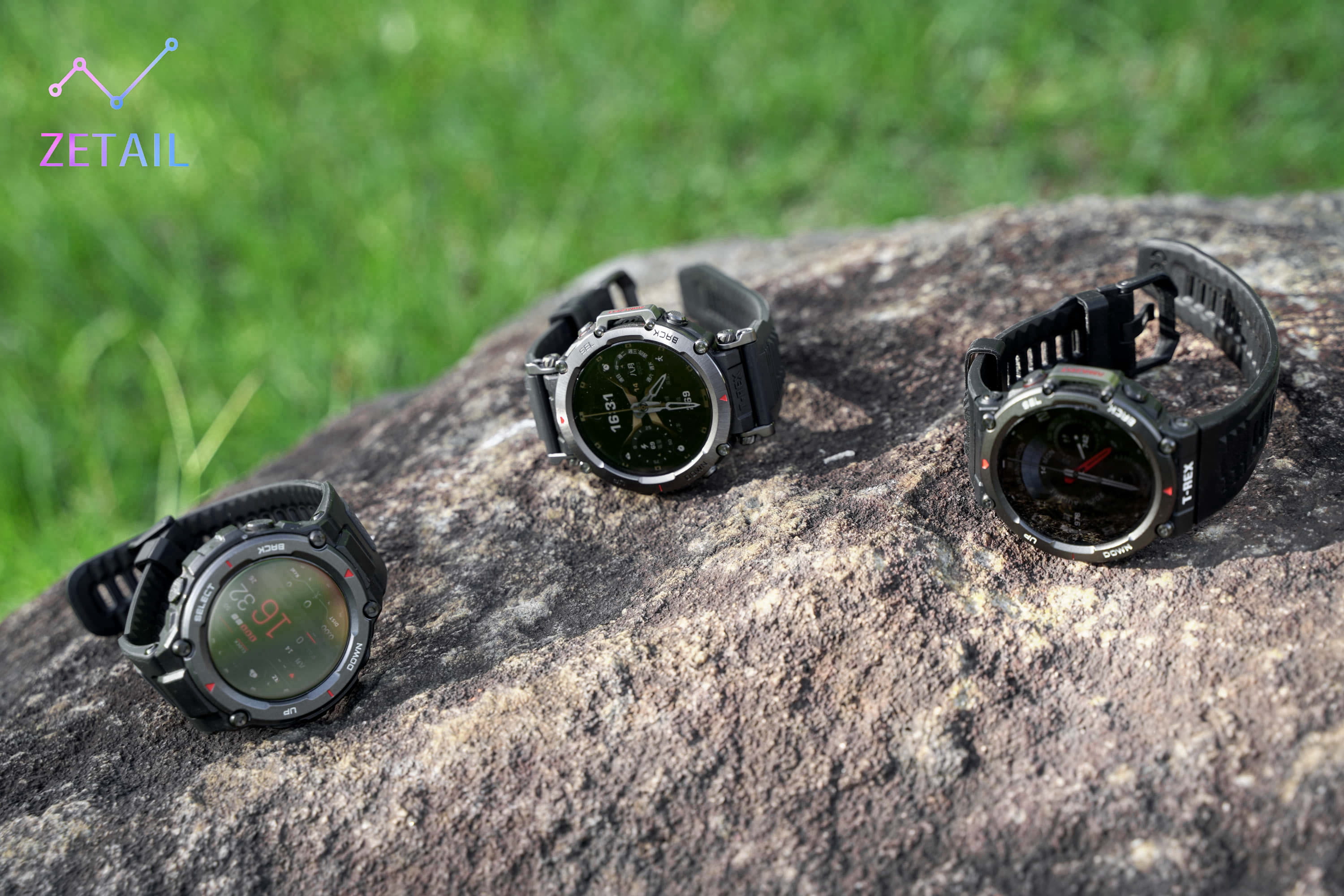 ▲ Amazfit 的 T-Rex 家族三代同堂,左邊是 T-Rex Pro,中間是 T-Rex Ultra,右邊是 T-Rex 2,不知道哪一款更得你心?