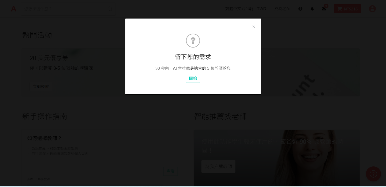 如果需求明確,希望由專業教師深入了解你的學習需求,可以使用上述進階設定功能告訴平台你的需求,平台 AI 將自動為你推薦合適的教師協助你,並提供你最透明的資訊供你參考,真的非常方便!