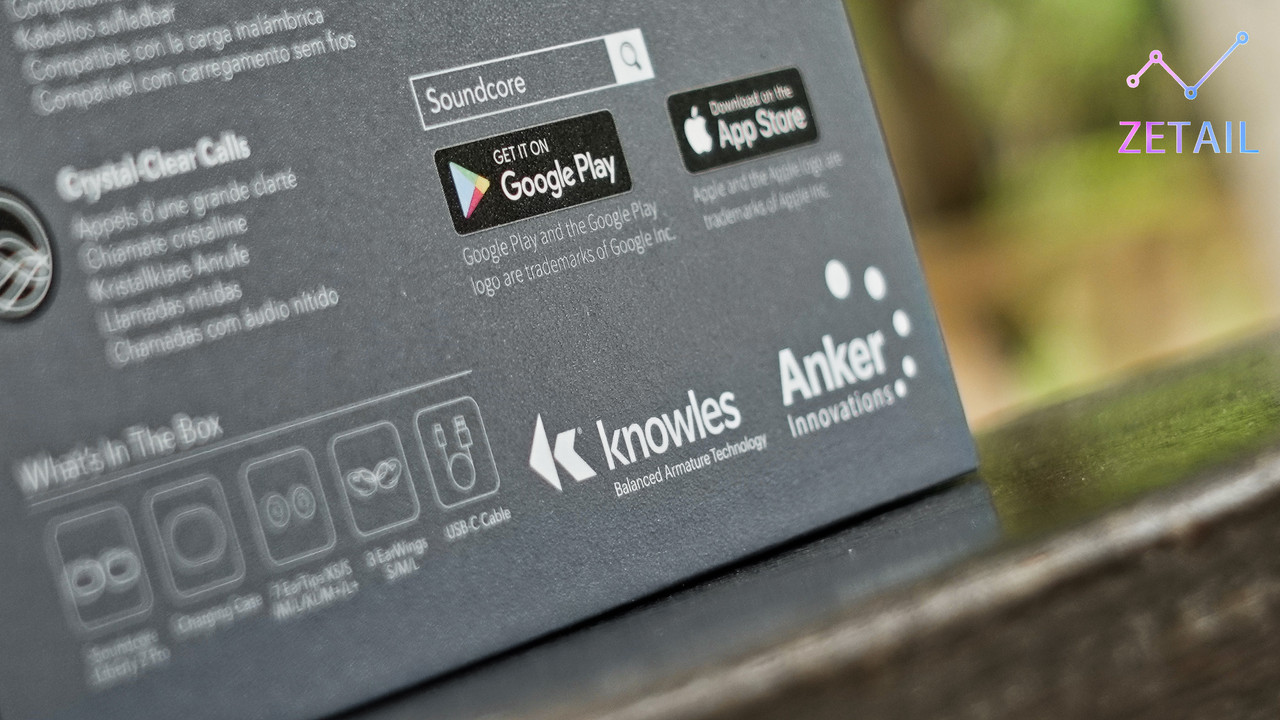 ▲ 盒裝使用磁吸側翻設計。翻開後可以看到一整面的「ACAA 同軸圈鐵」結構透視圖與更詳盡的介紹,可見 Soundcore 重視這個設計的程度。