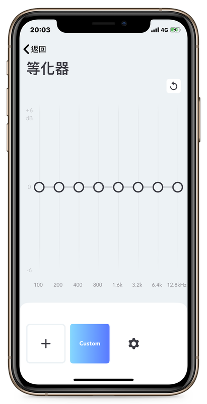 ▲ 點進「Custom」之後會看到如上圖的介面,你可以依據自己的好惡,調整各個頻率的分倍增減;底部則讓使用者可以同時保留多個聲音設定。