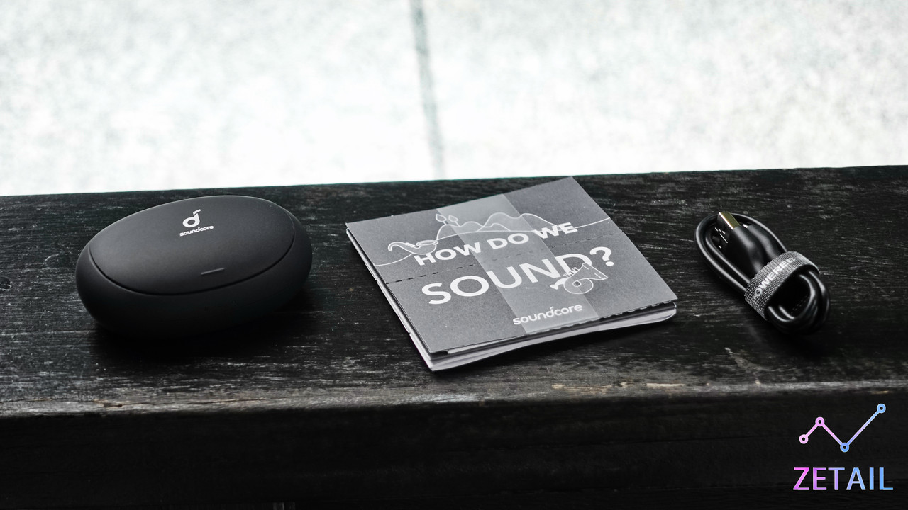 ▲ 盒裝內的配件如上,包括 Liberty 2 Pro、一疊紙本文件 (包括保證書、快速上手指南、使用注意事項…等)、一條有 Soundcore 的 Logo 的充電線。
