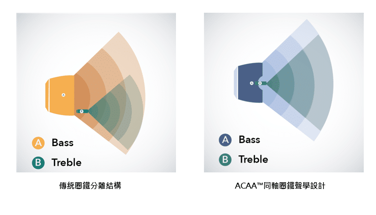 為了化理論於實務,Soundcore 重新擺放兩個單體結構的位置,創造出了現在 Liberty 2 Pro 所搭載的「ACAA (Astria Coaxial Acoustic Architecture) 同軸圈鐵」聲學設計,也就是把兩個單體的出音口都固定在相同軸線的導管上,藉此讓音頻輸出對稱,避免三頻相互干擾。我不太確定,但根據官方的說法,這是 Soundcore 獨創的設計。