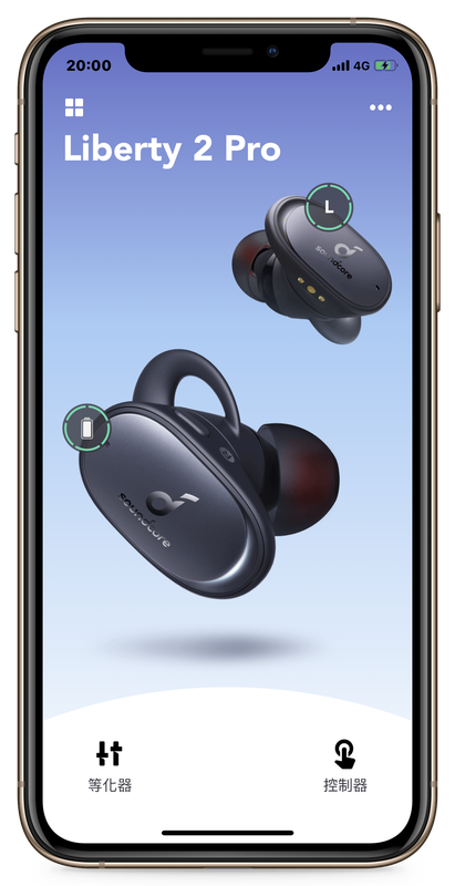Soundcore 的使用介面算是淺顯易懂,主要就是兩大功能:「控制器」與「等化器」,前者用來讓使用者自定 Soundcore Liberty 2 Pro 的按鍵功能,你可以選擇「按兩下」和「長按」左、右邊耳機上的按鍵各自觸發的功能,包括音量調整、切換歌曲、啟動語音助理…等。