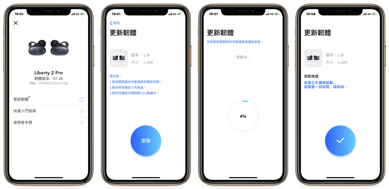 ▲ 在我第一次開啟 Soundcore App 時,立刻就收到了 Liberty 2 Pro 的韌體更新,有專屬應用程式的好處就在此。