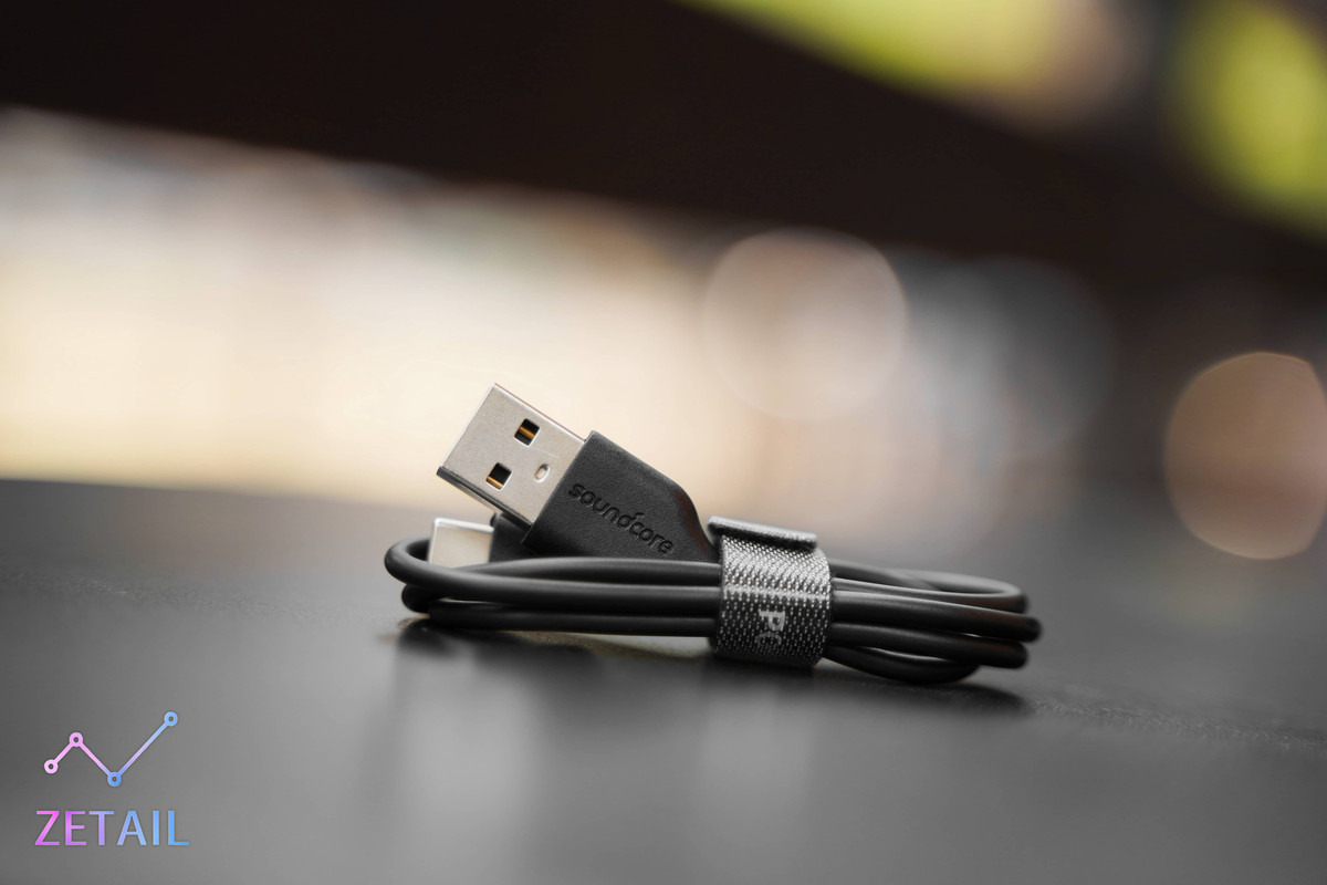 ▲ 延續 Soundcore 優異的傳統,隨附的 USB-C 充電線上依然有 Logo。
