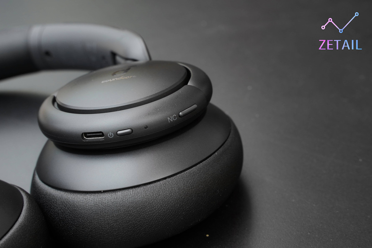 Soundcore Life Q30 採用「實體按鍵」操作,雖然保守了一點,但無可否認「實體按鍵」依然是目前操作準確度、反應速度、上手難度、成本…等各個面向權衡之下的最優解。Life Q30 的按鍵佈局很容易理解,右邊耳罩的三個按鍵控制音訊(播放 / 暫停、音量調整、切換歌曲、啟動語音助理)、左邊的兩個按鍵控制功能(電源鍵、「多點連接」、切換降噪模式),絕大部分操作都能直接在耳機上完成,使用起來相當順手。