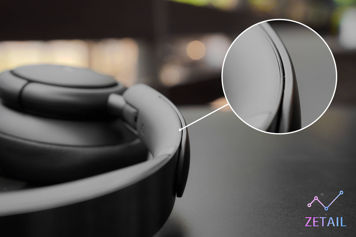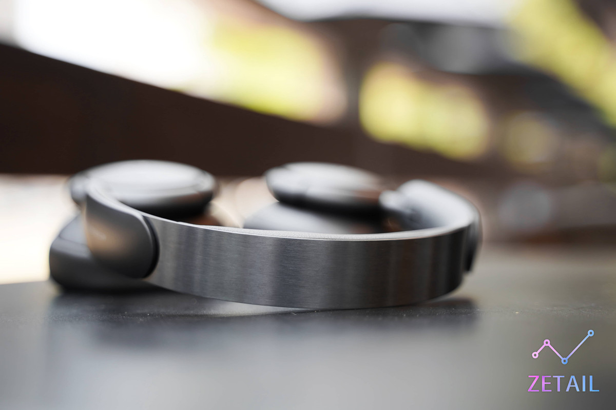 ▲ 耳機的頭帶使用金屬片來強化結構,而且有髮絲紋的設計。