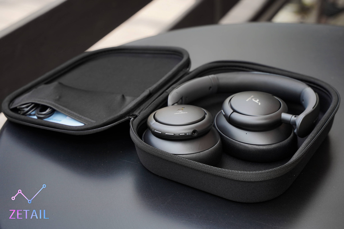 Soundcore Life Q30 上面總共有四個可活動的部分,包括「耳罩方向(90 度)」、「耳罩傾斜(15 度)」、「耳罩折疊」、「側臂長度(10 個段落)」,使用自由度很高,對不同類型、偏好的使用者都相當友好;用完要收納也很方便,只要將兩邊耳罩攤平,再把左耳罩稍微折疊起來就可以直接放進隨附的收納盒,這樣的表現放在這個價位著實難以挑剔。