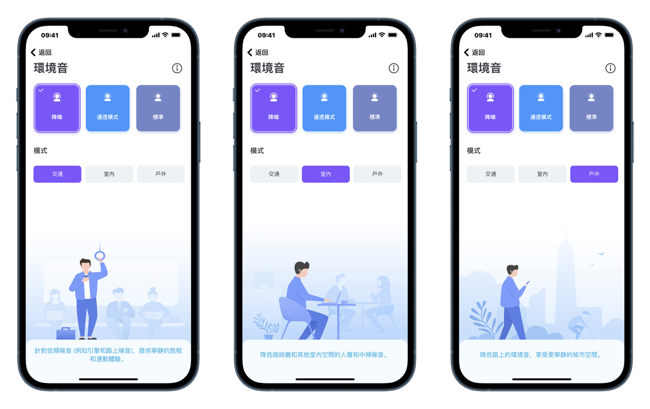▲ Life Q30 的三個降噪模式,分別是「交通」、「室內」和「戶外」。