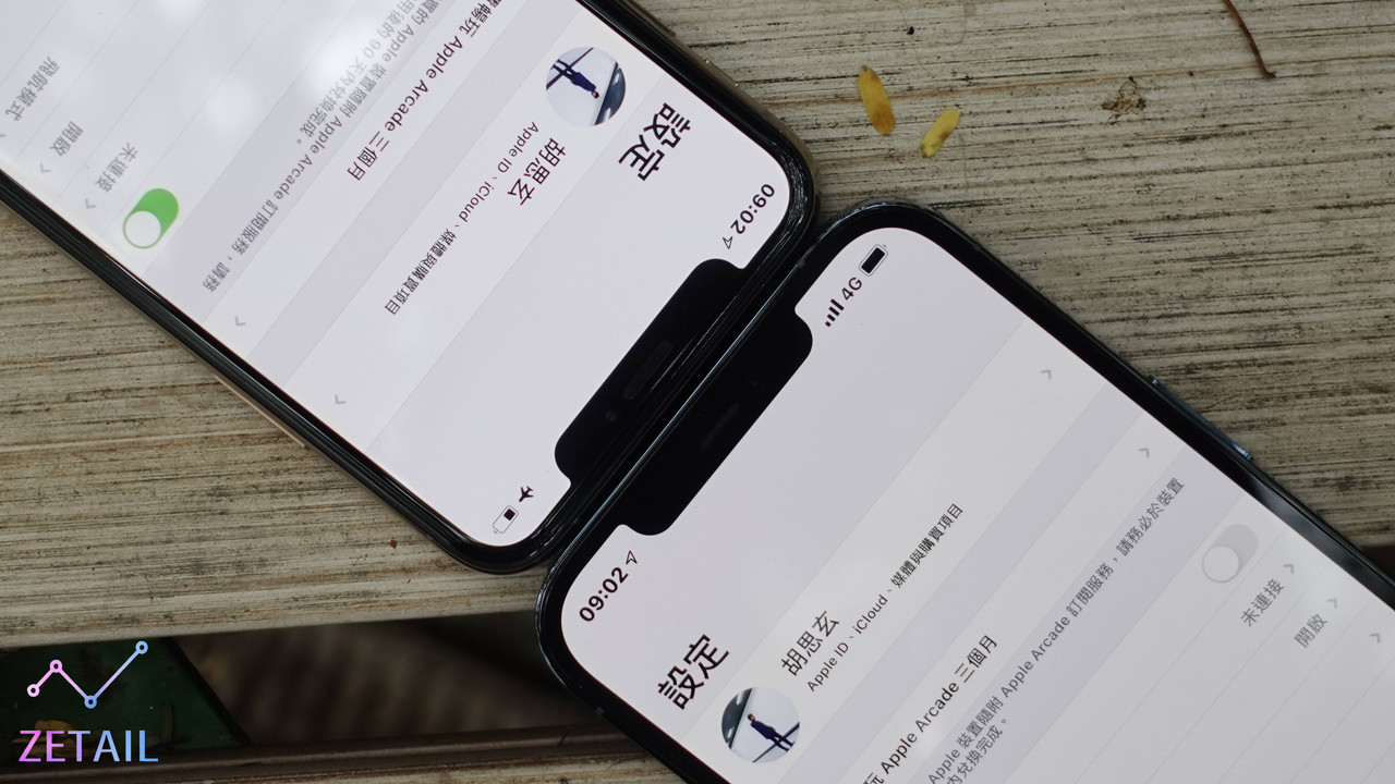 ▲ 圖左上:iPhone XS、圖左下:iPhone 12 Pro Max。雖然「瀏海」大小不變,但因為螢幕尺寸增大,使得瀏海旁的螢幕空間也變大了。
