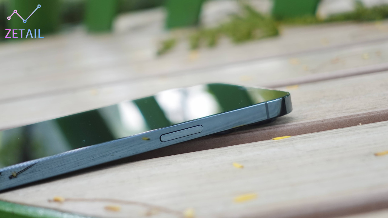 ▲ 臺版 iPhone 12 Pro Max 的機身右側現在僅剩電源鍵;如果是美版,電源鍵下方還會有個 mmWave (毫米波) 的 5G 天線。另外,由於屬於「Pro」系列,iPhone 12 Pro Max 的邊框依舊採用光亮的不鏽鋼材質,而背面則是霧面玻璃。