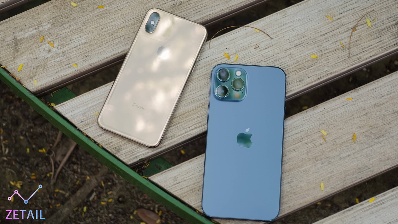 ▲ iPhone XS (圖左) 採用「亮面」玻璃背板 (有貼霧面保護貼,所以看不太出來),iPhone 12 Pro Max (圖右) 則是「霧面」玻璃。