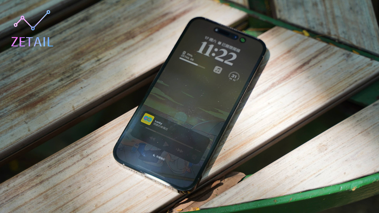 ▲ iPhone 14 Pro 系列終於也加入「永遠顯示」(Always-on Display)功能,跟 Android 不一樣的是,iPhone 的「永遠顯示」看起來像是還開著螢幕,會持續顯示背景圖片、鎖定螢幕小工具、音樂播放器,而且它會隨環境改變亮度,這是我看過最亮的「永遠顯示」了。