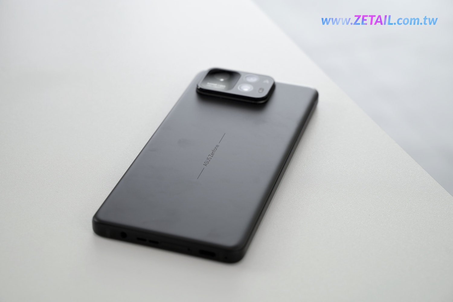 說到背板,這正是 Zenfone 12 Ultra 外觀改動最大的地方。一改去年以華碩的新 Logo 作為主要元素,覆蓋、融入整個背板的設計;Zenfone 12 Ultra 的背面沒有顯眼的圖樣,只在中央留下小小的「ASUS Zenfone」字樣,十分低調。我覺得如此「化簡為簡」的做法有點可惜,讓它的辨識度降低了一些。