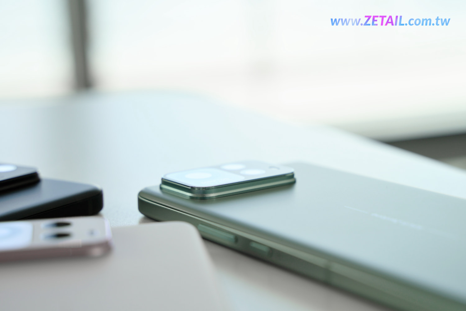Zenfone 12 Ultra 目前共有「檀木黑」、「冷衫綠」、「櫻花白」三種顏色可選,其中最特別的就是後兩個顏色;「冷衫綠」介於藍色和綠色之間,同時看起來有點灰灰的,彩度不高,所以相當耐看,風格獨樹一幟;「櫻花白」則是介於粉色與白色之間,只有在某些角度或光線下,可以明顯看到它的粉色,其他時候都非常非常淡,同樣不容易「看膩」。Zenfone 12 Ultra 這次的顏色調配、選擇頗具水準,也令人很期待之後會不會再追加新色。