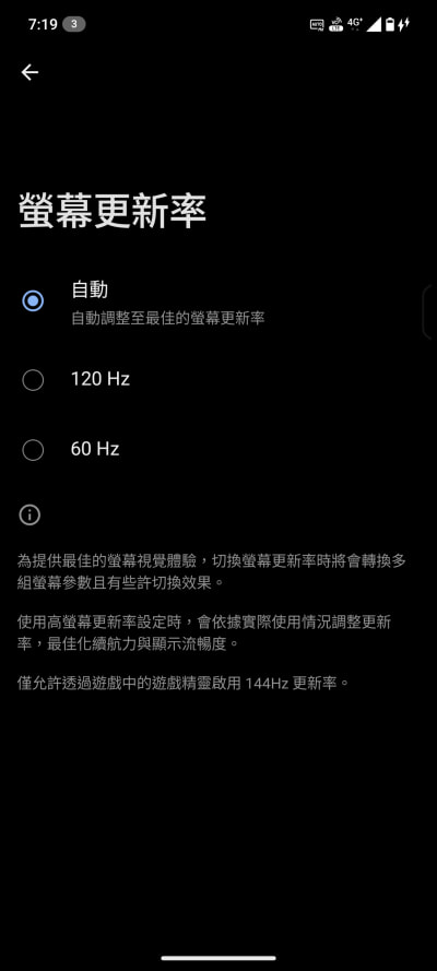 ▲ 你可以在手機設定裡面自己切換螢幕更新率的選項。