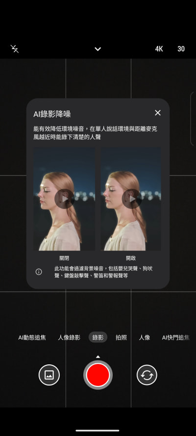 ▲ 現在錄影也加入針對聲音的 AI 降噪功能,開啟之後會大幅消除背景噪音。