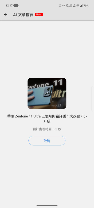 ▲ 我選擇的是雲端處理,過個幾秒之後,整篇文章的條列式摘要就會出現。用 Zenfone 11 Ultra 的評測文章來測試,我覺得摘要結果相當好(作者覺得好,應該是真的好XD)。