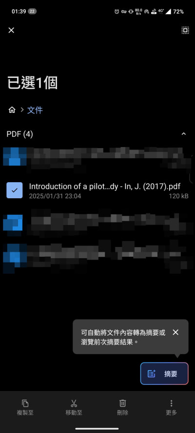 ▲ 透過手機內建的檔案管理器找到想要摘要的檔案之後,長按就會出現右下角的「摘要」按鈕。