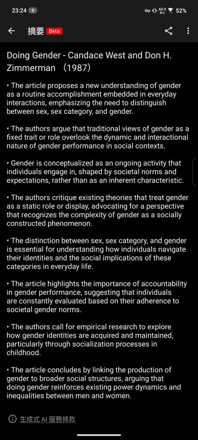 ▲ 我以一篇英文學術文章來實測 Zenfone 12 Ultra 的檔案摘要功能,結果也很不錯,一些重點都有提到。