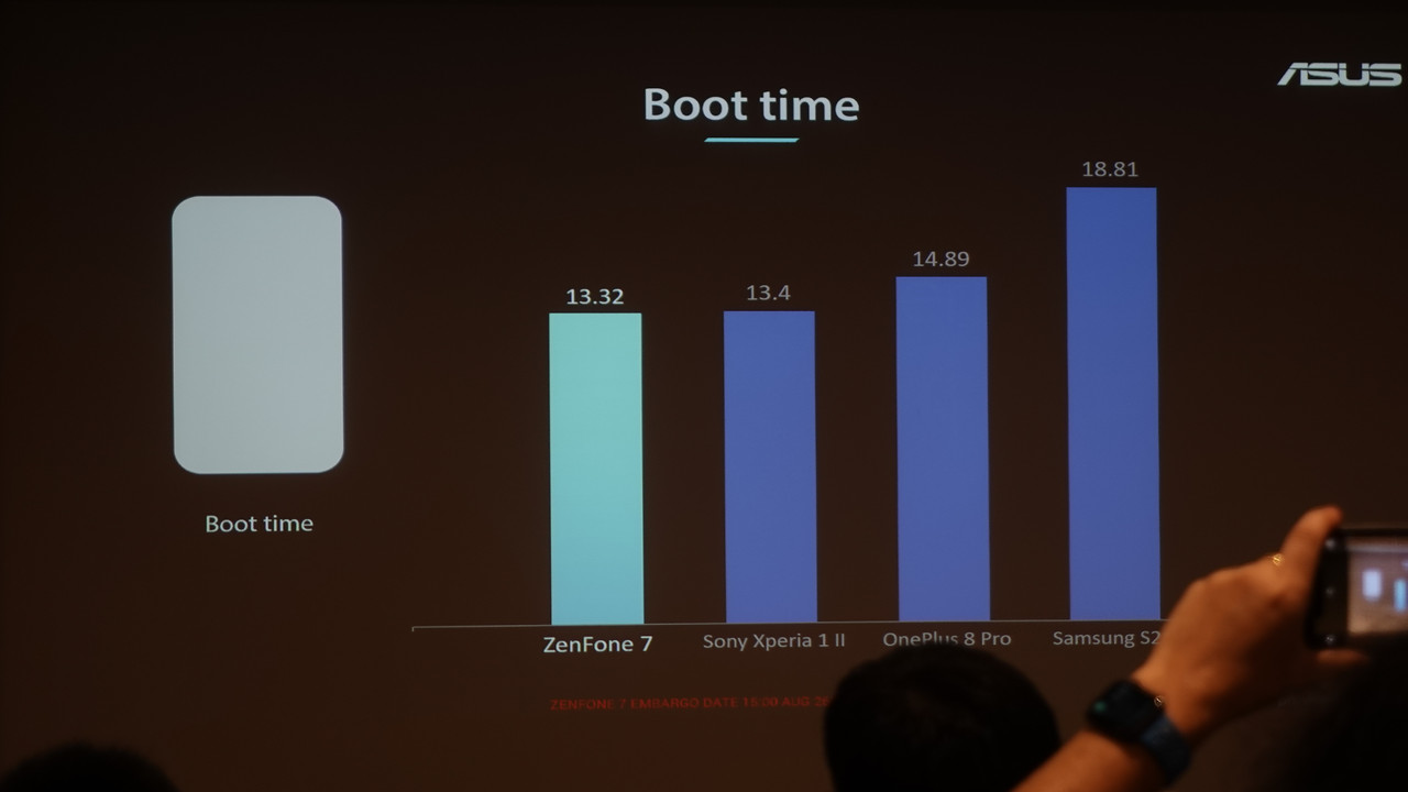 ▲ 根據華碩內部的測試,ZenFone 7 系列在上述四個使用情境下的速度,都要勝過市面上的競品 (SONY Xperia 1 II、OnePlus Pro 8、Samsung Galaxy S20+)。