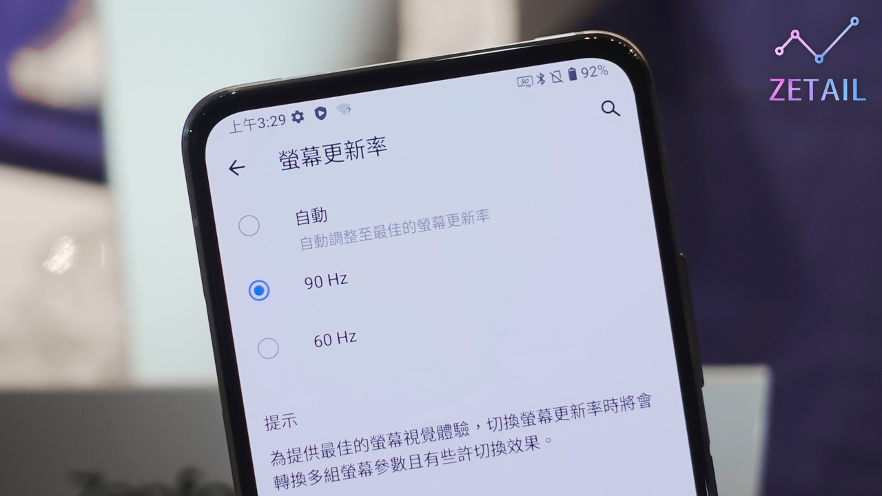 ▲ 首先是 ZenFone 7 和 ZenFone 7 Pro 的「螢幕更新率」最高都可以到 90Hz,雖然沒有直上 120Hz,不過短暫使用下來還是可以感受到非常順暢的螢幕滑動、動畫顯示效果。