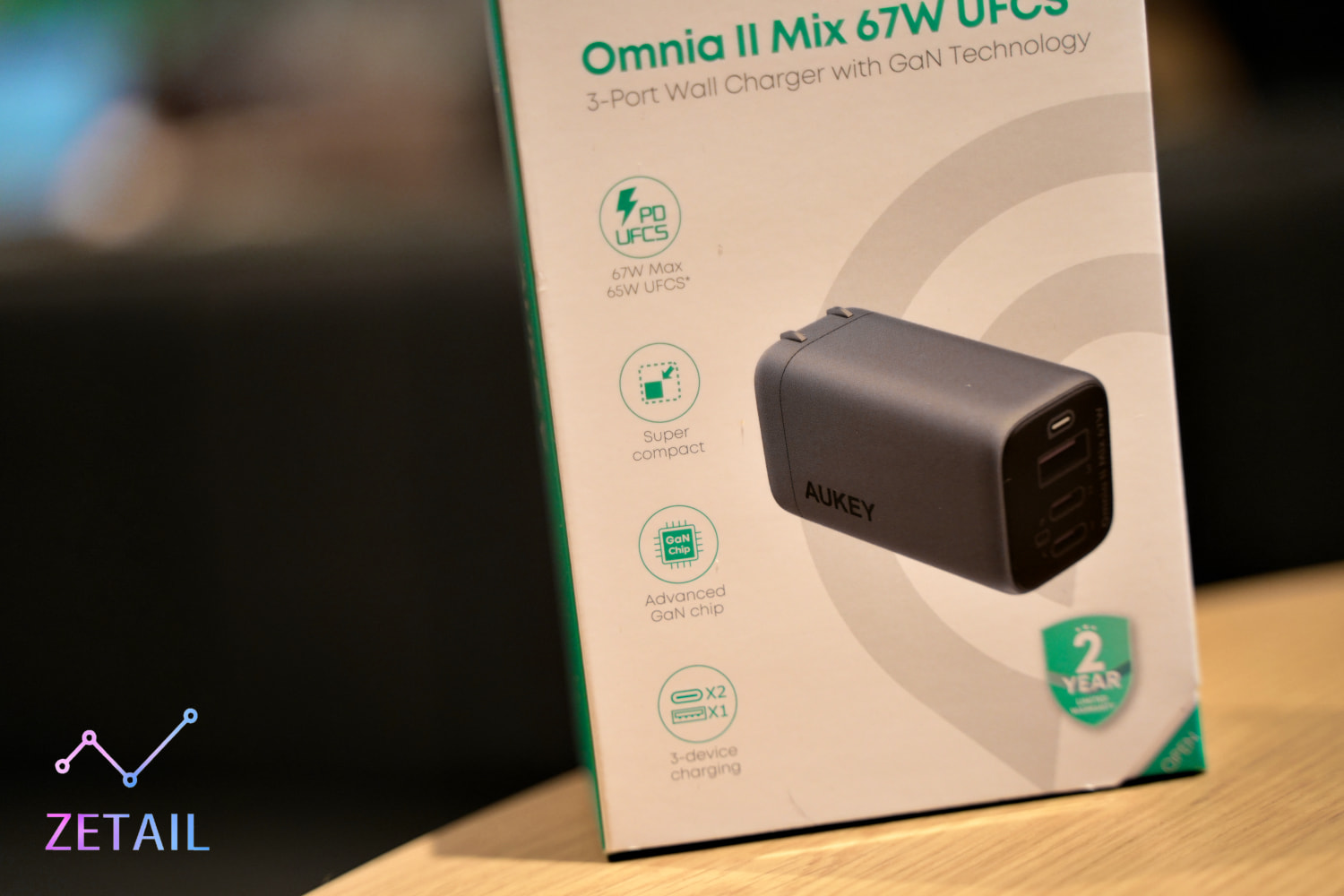 ▲ Omnia II Mix 67W 充電器採用 AUKEY 一貫的白綠配色,頗具辨識度。
