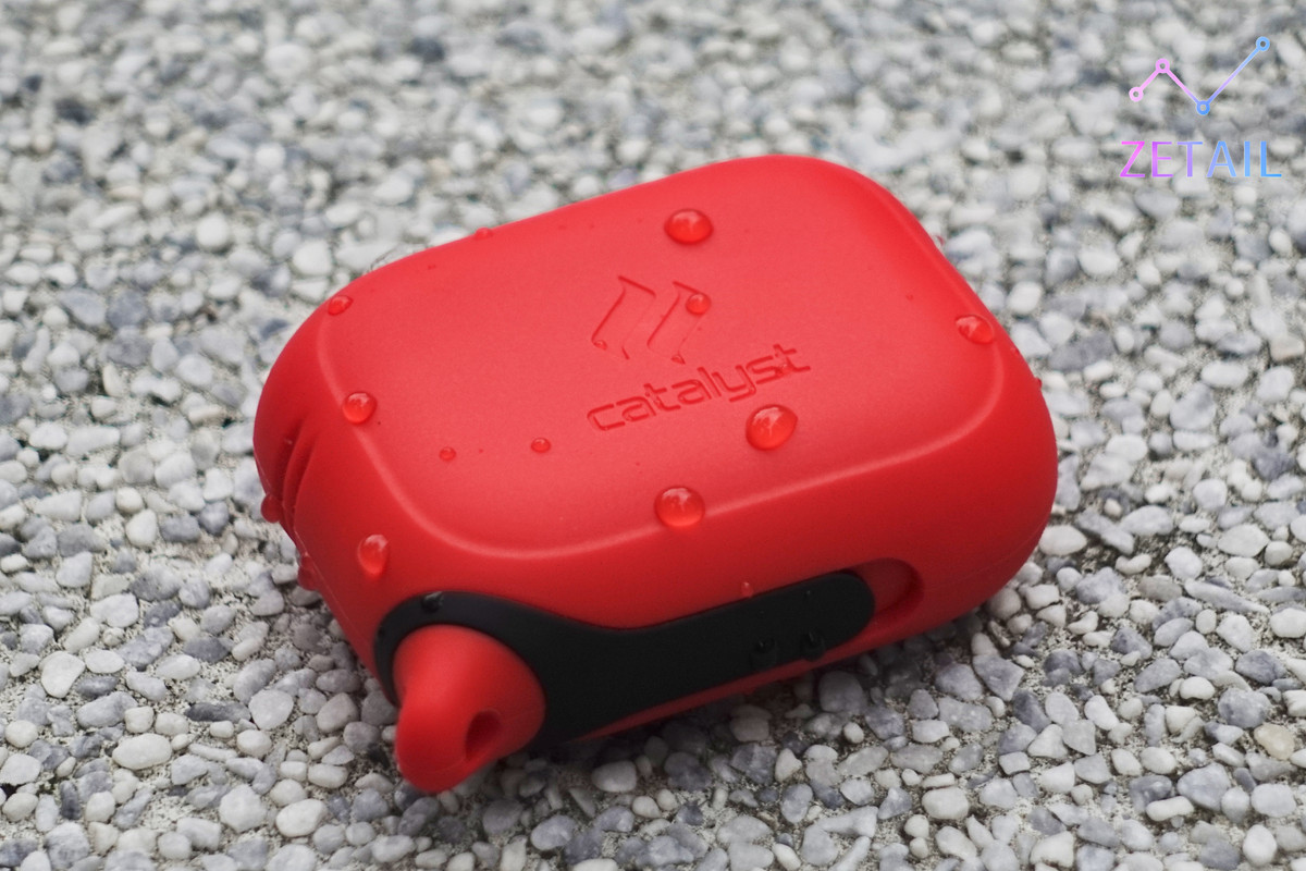 AirPods Pro 保護套的防水設計十分獨特,雖然從外觀看起來,水好像會從保護套頂部滲入,但實際上 Catalyst 很巧妙地在內部設計了「三道防線」阻擋水分流入或滲入,基本上只要不刻意掀開,保護套都不至於進水,如此周到又不著痕跡的防水設計難怪能得到 Apple 青睞。