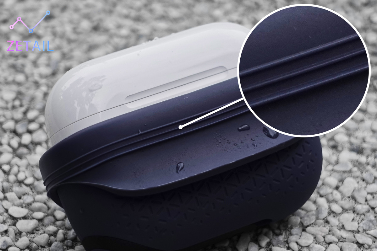 ▲ 雖然 Catalyst 的 AirPods Pro 保護套頂部看似沒有保護、很容易進水,但其實 AirPods Pro 保護套的防水設計是在內部的「三道防線」,這是 Catalyst 的專利設計,相當特別。