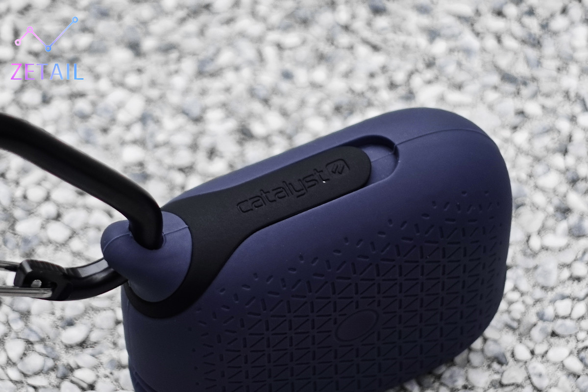 Catalyst 的 AirPods Pro 保護套和之前一樣用上矽膠材質,觸感非常滑順、舒適,保護套本身的厚度與包覆性也比之前更厚、更好,使用起來更令人放心。值得一說的是這次 Catalyst 針對扣環的設計做了改進,全新的不銹鋼線扣搭配鋁合金扣環組合,使得打開扣環時更加輕鬆、不費力,結構與耐用性也有所加強。