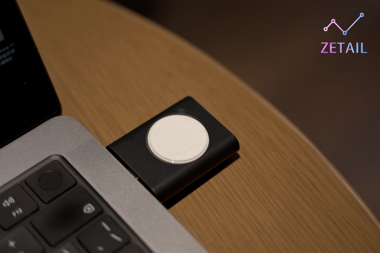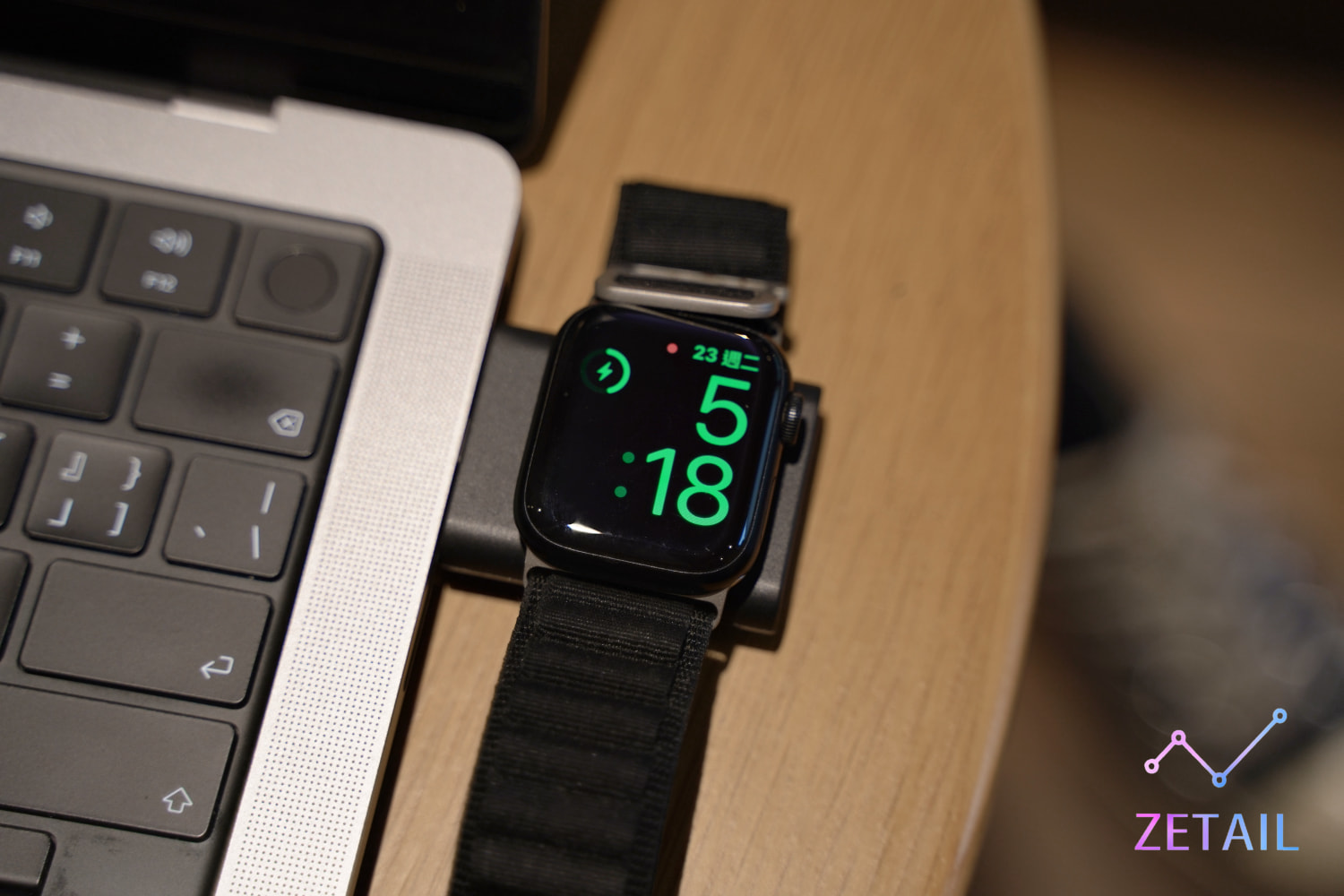 ▲ 由於是分離式設計,你可以將它插在筆電上,形同隨身帶著 Apple Watch 充電器,超級方便!