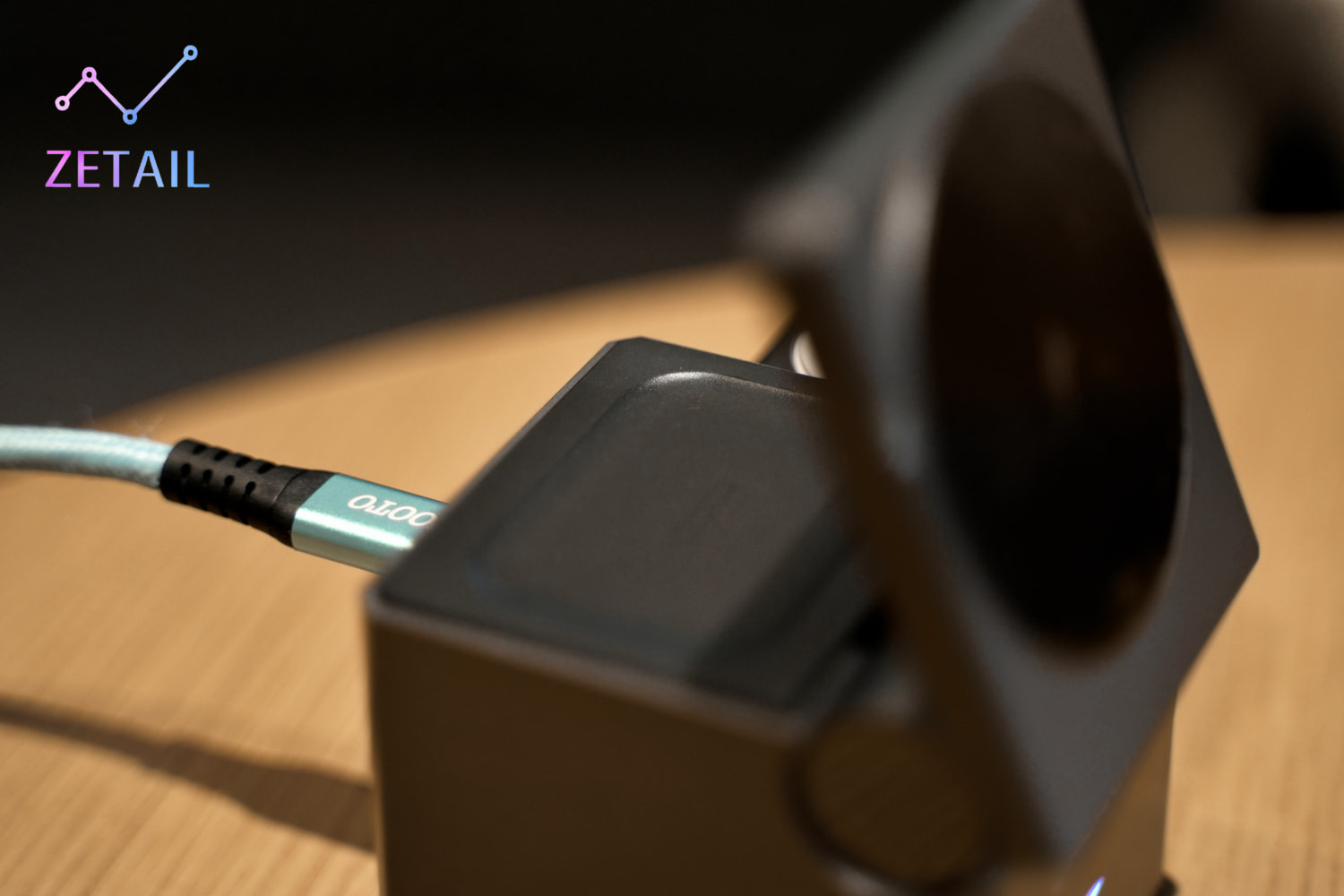 那 Apple Watch 充電區呢?答案就在底部,Apple Watch 充電器採分離式設計,只要將它取出、插在右側預留的 USB-C 插槽,就可以為 Apple Watch 充電,不使用時再將它收納在底部;Choetech 還為它加入磁吸設計,吸力挺大的,所以無需太擔心遺失,十分貼心。此外,把 Apple Watch 充電器設計成分離式還有個好處,也就是任何能夠供電的 USB-C 插槽,都能用來幫 Apple Watch 充電,無論是筆電、充電器等,瞬間豐富了它的使用情境。