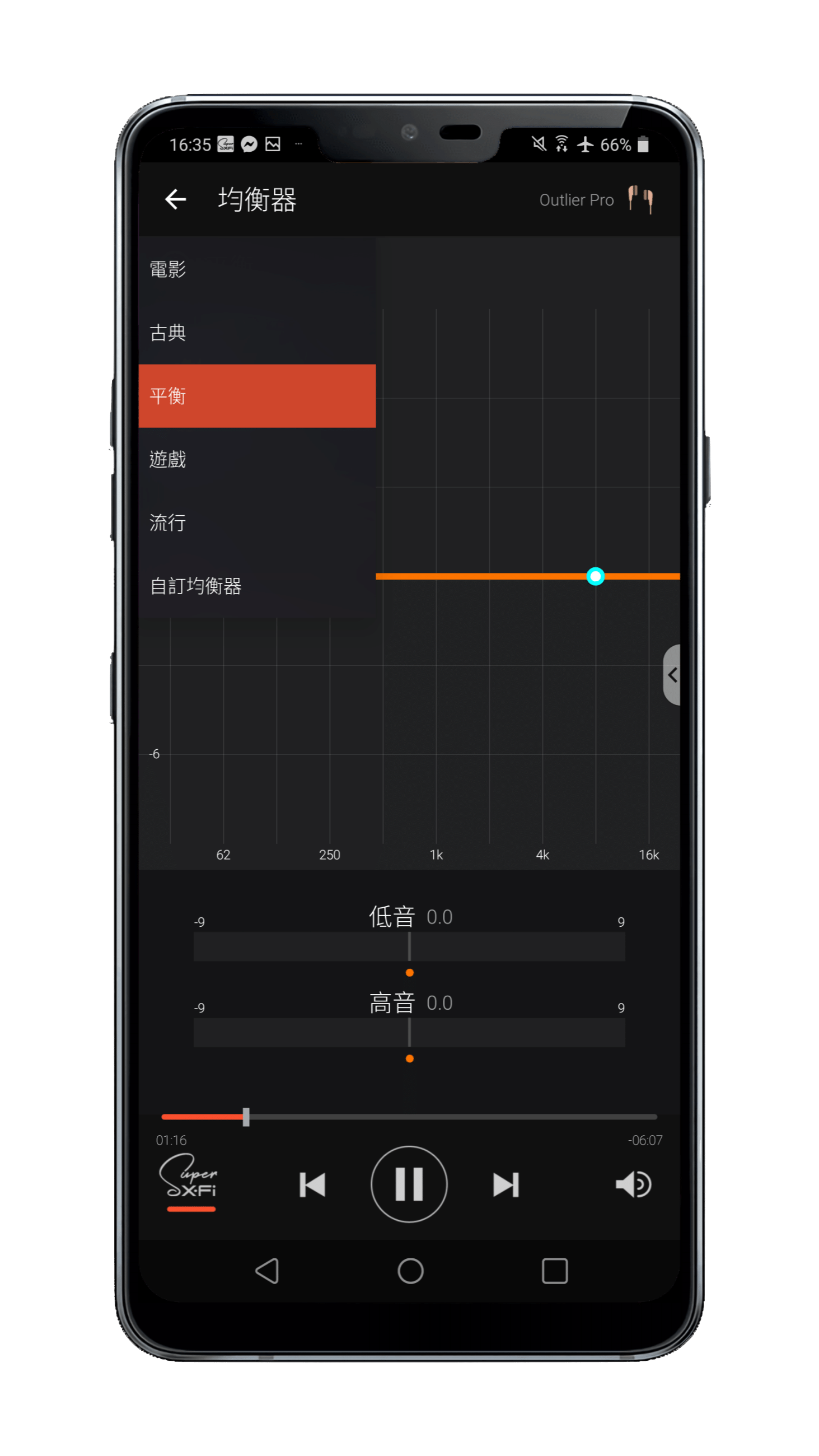 ▲ 在「SXFI」應用程式裡面也同樣有設定等化器的功能,不過就沒有提供那麼多預設等化器了。