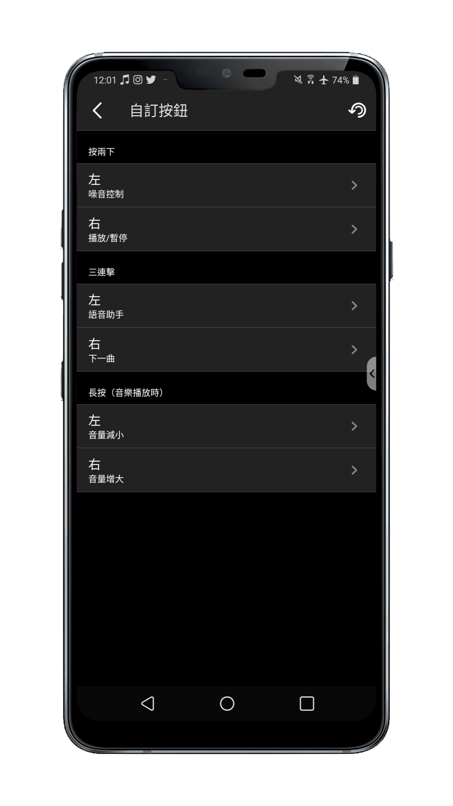 ▲ 如果你不習慣 Outlier Pro 預設的觸控手勢,也可以自行調整,像我就把點三下左邊耳機改成切換回上一首歌,而點三下右邊耳機依然是切換至下一首歌。