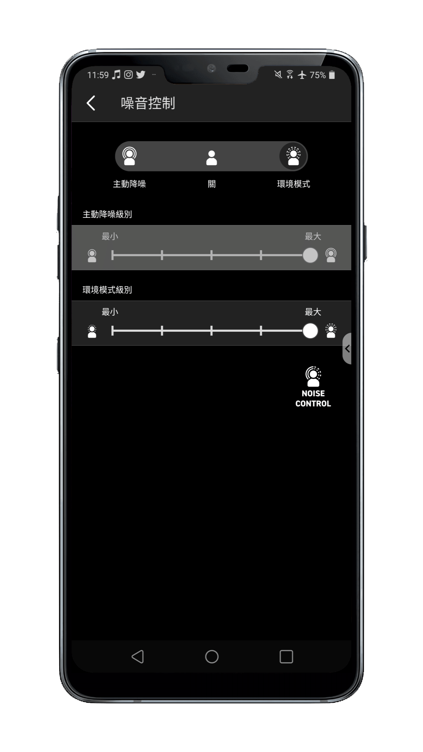 ▲ 在「Creative」應用程式可以調整「主動降噪」與「環境模式」的強度。