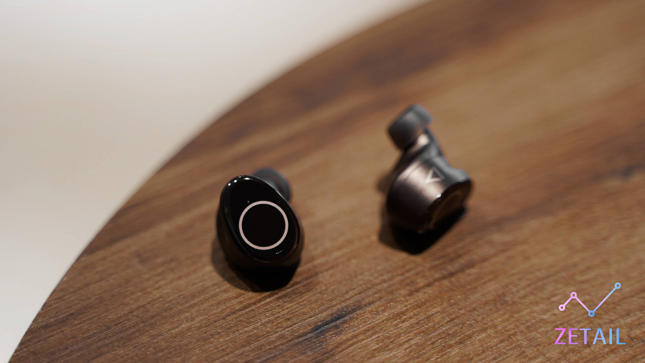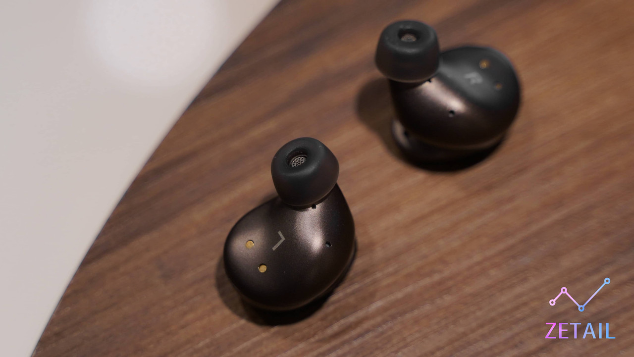 Outlier Pro 的耳機採用人體工學設計,以人耳內部的輪廓為模型打造,所以看起來凹凹凸凸、不太規則,倒是配戴感受值得期待。耳機機身大面積都是磨砂質感,乍看之下跟充電盒的金屬材質差不多,一樣很細緻,不過耳機實際上是塑膠材質;比較特別的是,Creative 為 Outlier Pro 設計了鏡面背板,因此看起來格外耀眼,如果反射光線甚至會有點刺眼,當然,這樣的設計好看歸好看,長期使用勢必會沾染指紋,就需要使用者多加清潔了。