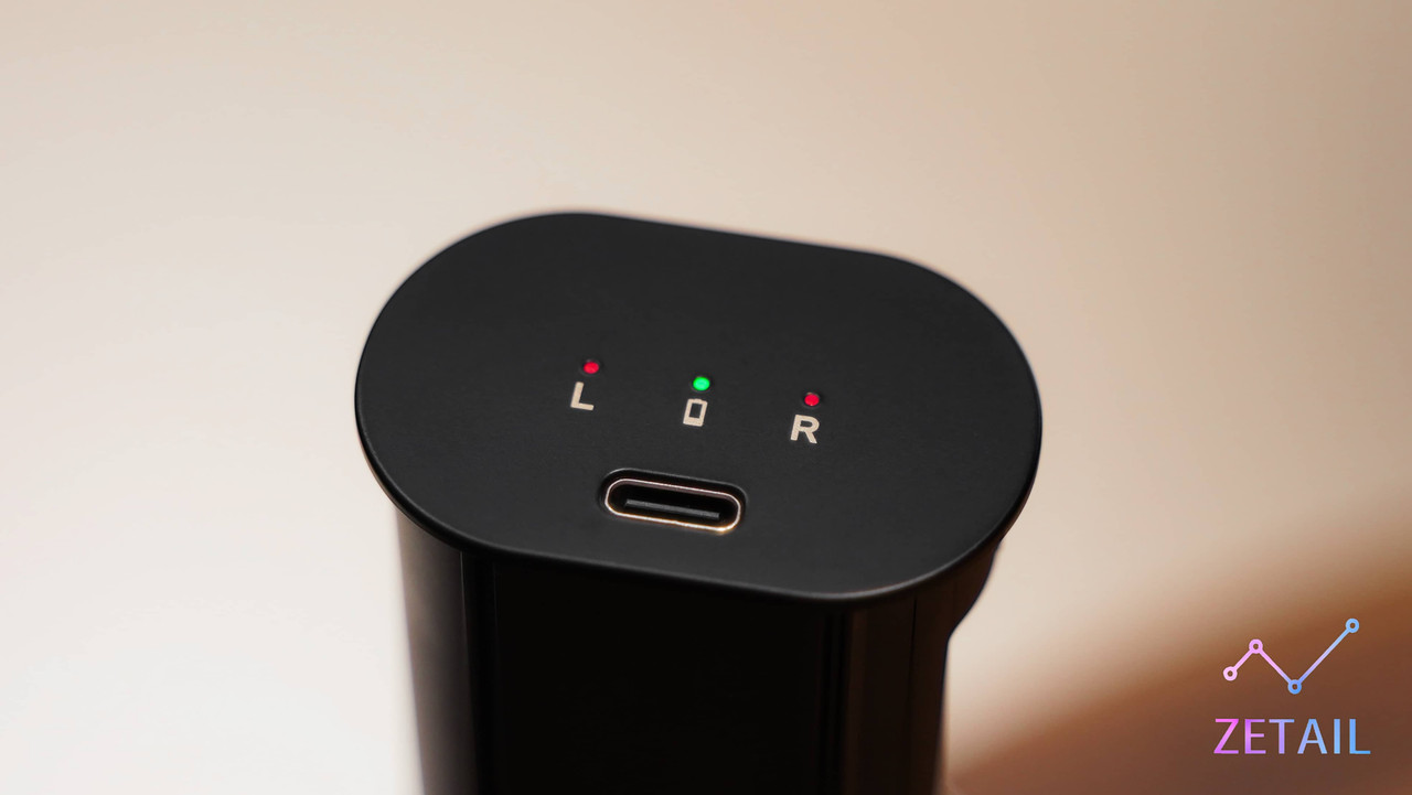 Outlier Pro 其中一個很令人欣賞的設計就是它清楚明確的燈號顯示,充電盒的左側有三顆 LED 提示燈(帶有呼吸燈的效果),它們分別代表的是左邊耳機、右邊耳機與充電盒的剩餘電量和充電狀態,不僅如此,就連兩邊耳機都還各有一顆 LED 提示燈,因此無論有無打開充電盒,使用者都無需費心判讀,只要一眼就能確認耳機跟充電盒的充電狀態。