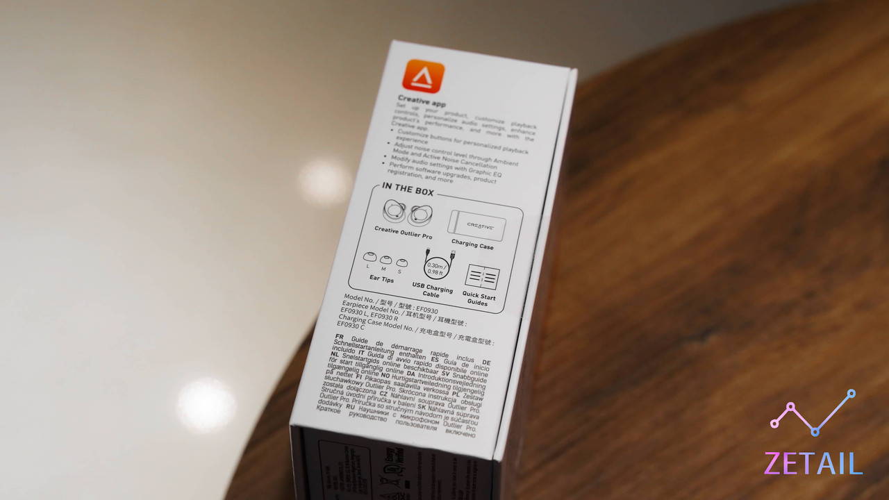 ▲ 背面標示了許多 Outlier Pro 的特色功能與規格,像是主動降噪、最長 60 小時的使用時間(搭配充電盒)、無線充電等,等一下我也會提到。