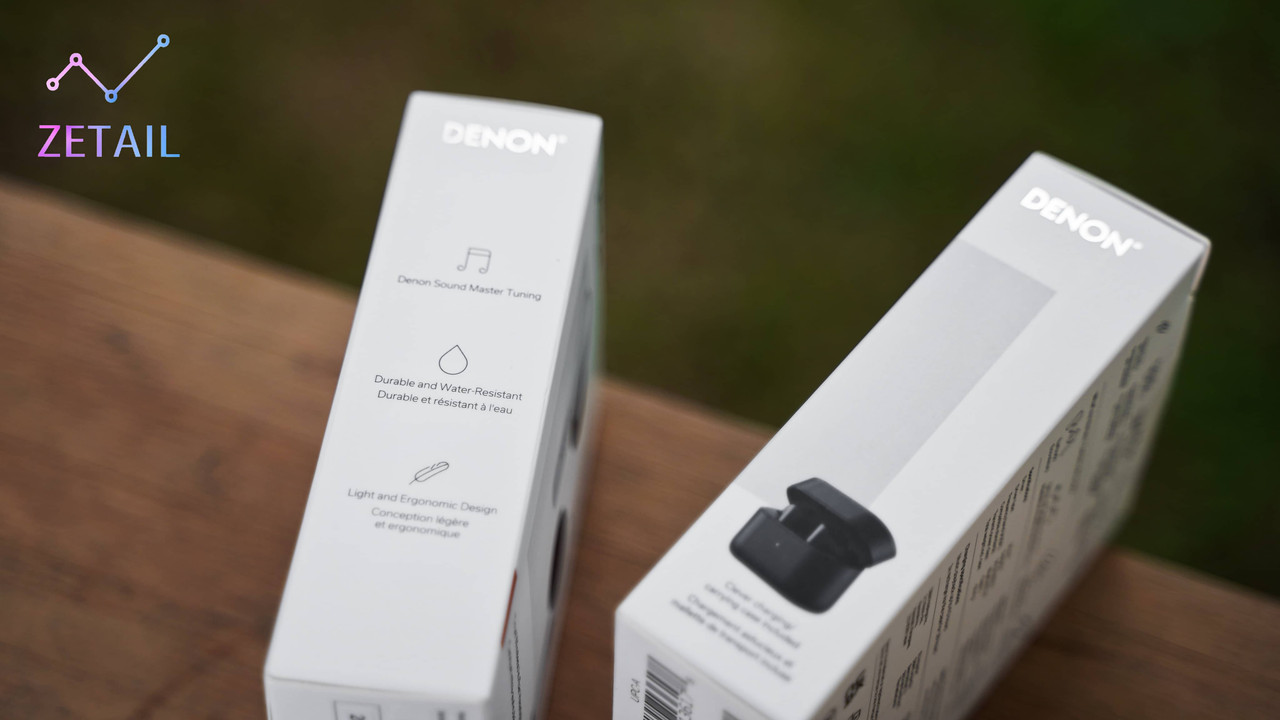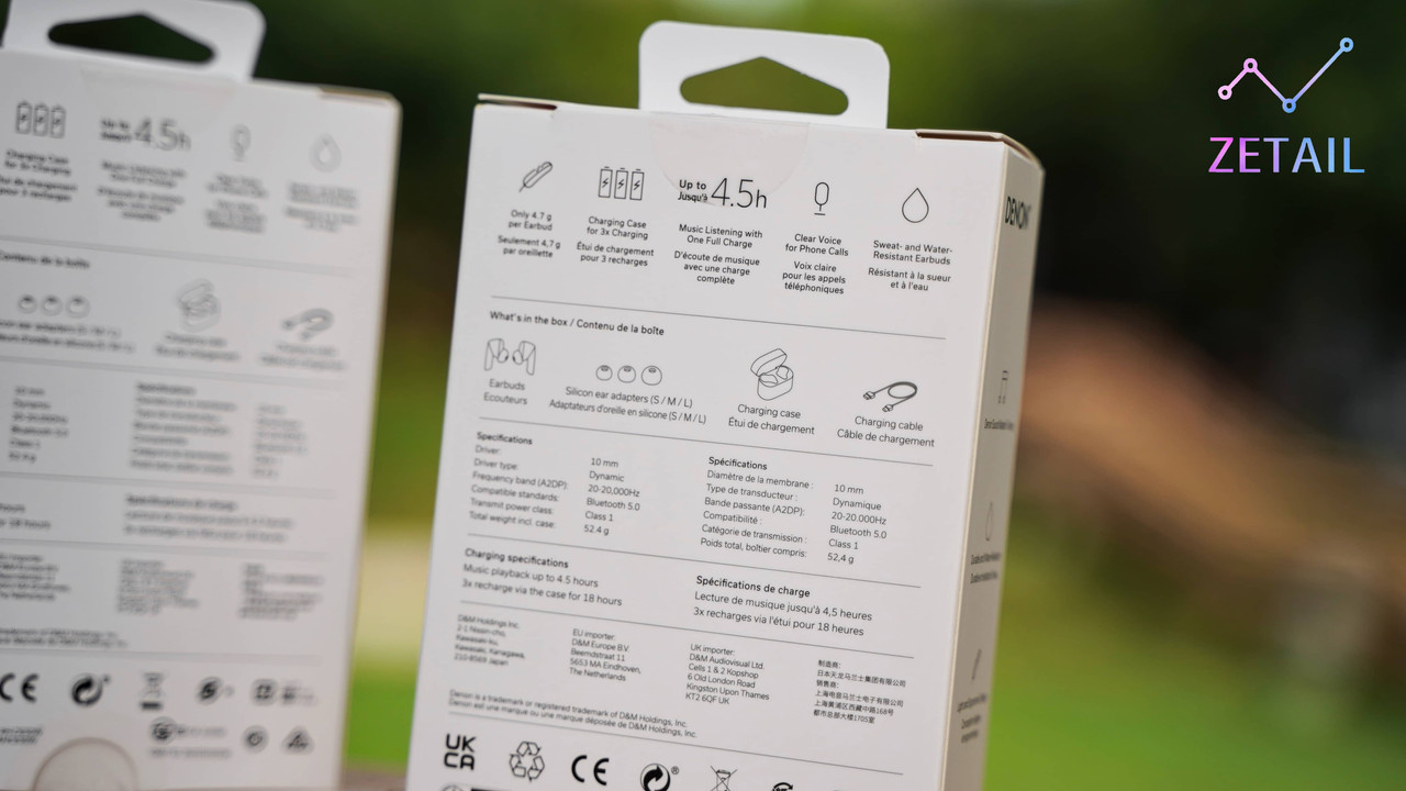 ▲ 側面有一些關於耳機的特色功能,比如「Denon Sound Master 調音」、「堅固且防潑水」、「輕量與人體工學設計」等。