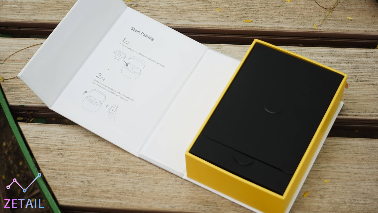 ▲ 盒裝採用磁吸式的掀蓋設計,打開蓋子後可以看到左側的配對教學以及右側的耳機、配件。